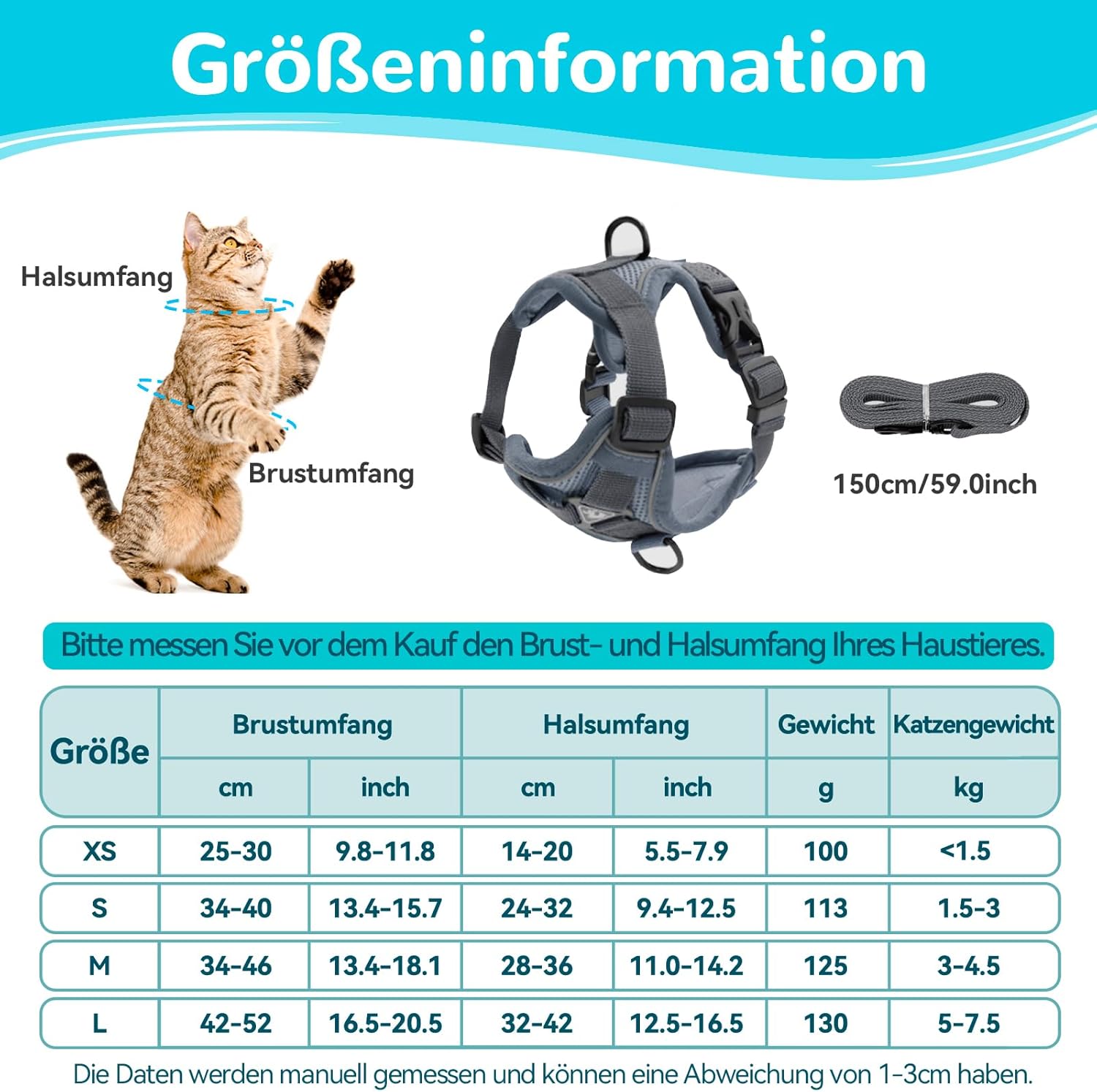 • Размер: Ще получите синьо морско яке размер M (гръдна обиколка: 34-40 см) с дължина на повода 1,5 метра. Моля, измерете внимателно гръдната обиколка на вашия домашен любимец преди покупка, за да си осигурите по-добро носене.