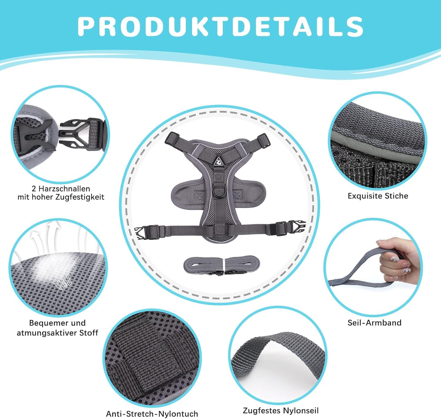 Регулируем нагръдник за котки, Защита от бягство, Нагръдник за котки с комплект каишки, Мек нагръдник за котки, Нагръдник за котки, Котенца, Кучета, Кученца (Сив, XS)
