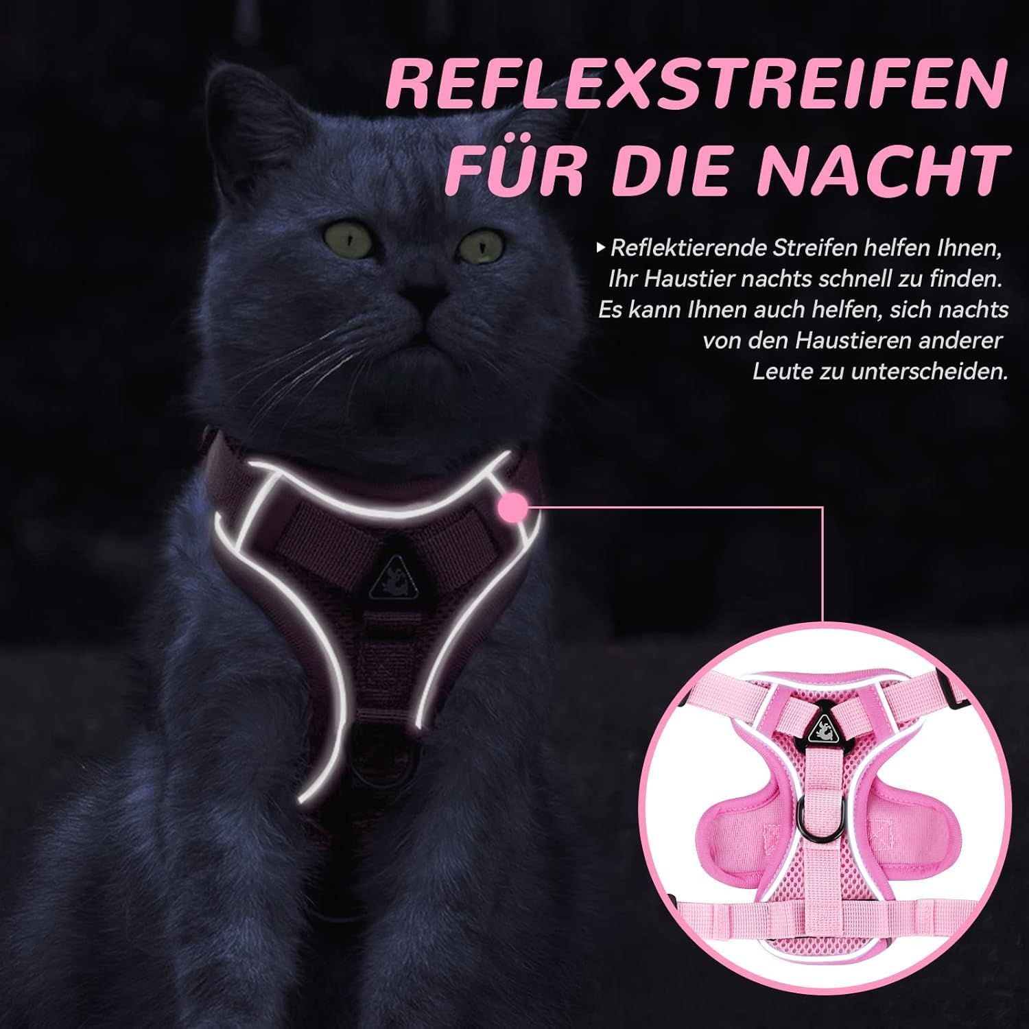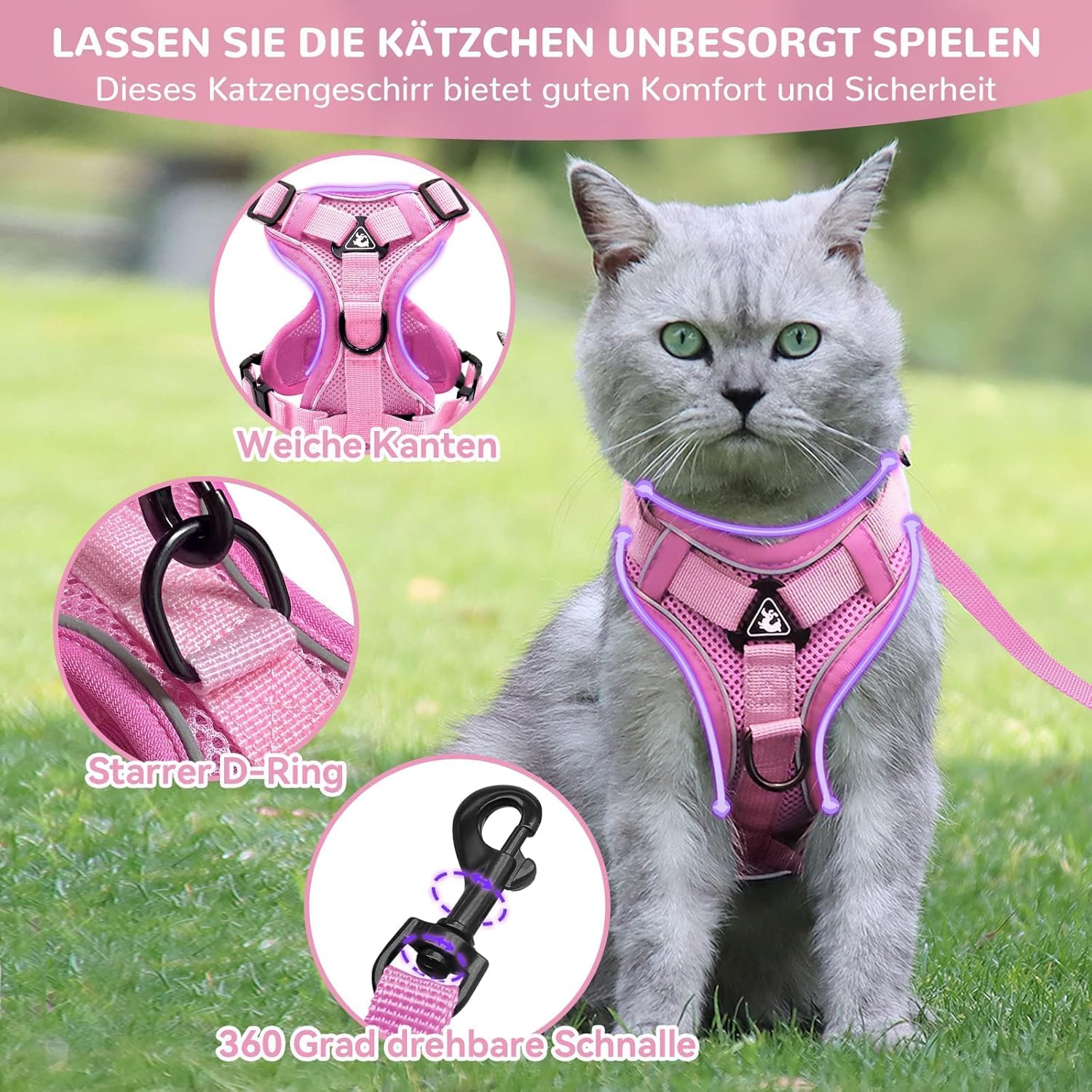 Регулируем нагръдник за котки, Защита от бягство, Нагръдник за котки с комплект повод, Мек нагръдник за котки, Нагръдник за котки, Котенца, Кучета, Кученца (Светлорозов, XS)