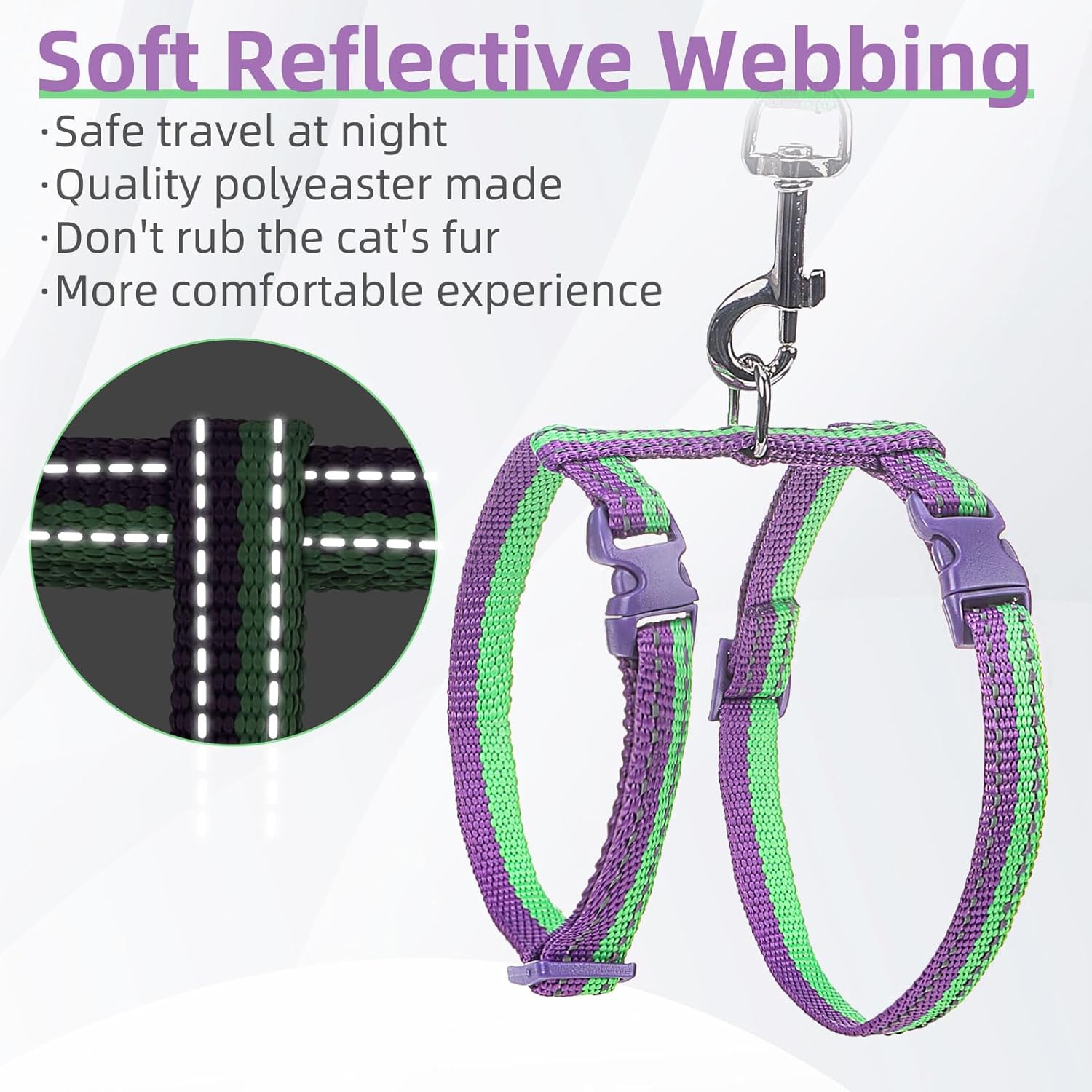 Регулируема каишка и нагръдник за котки PUPTECK, нашийник против бягство за котенца, разходки, пътуване, лилаво-зелен