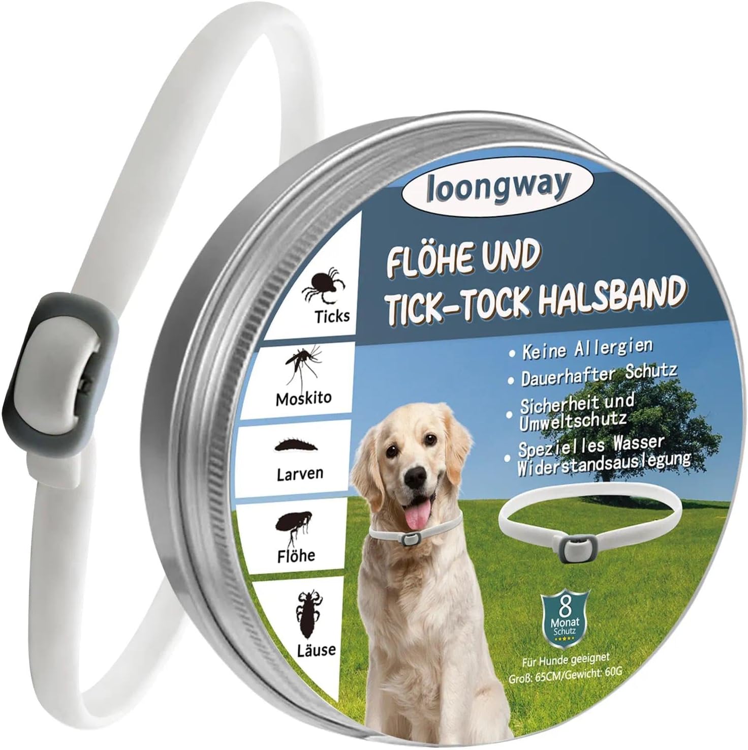 • Индивидуално прилягане и практично приложение: С дължина от 65 см и лесно регулиране чрез просто подрязване, нашийникът се адаптира гъвкаво към врата на всяко куче. Гладката повърхност и еластичният материал осигуряват сигурно, но свободно прилягане без стягане.