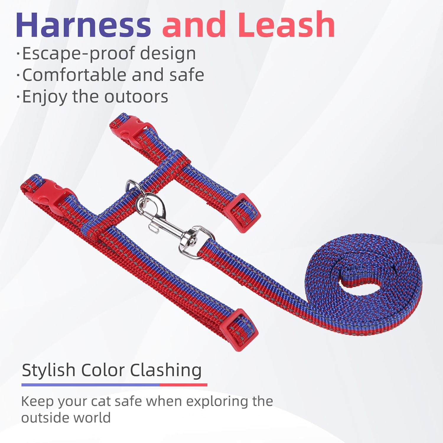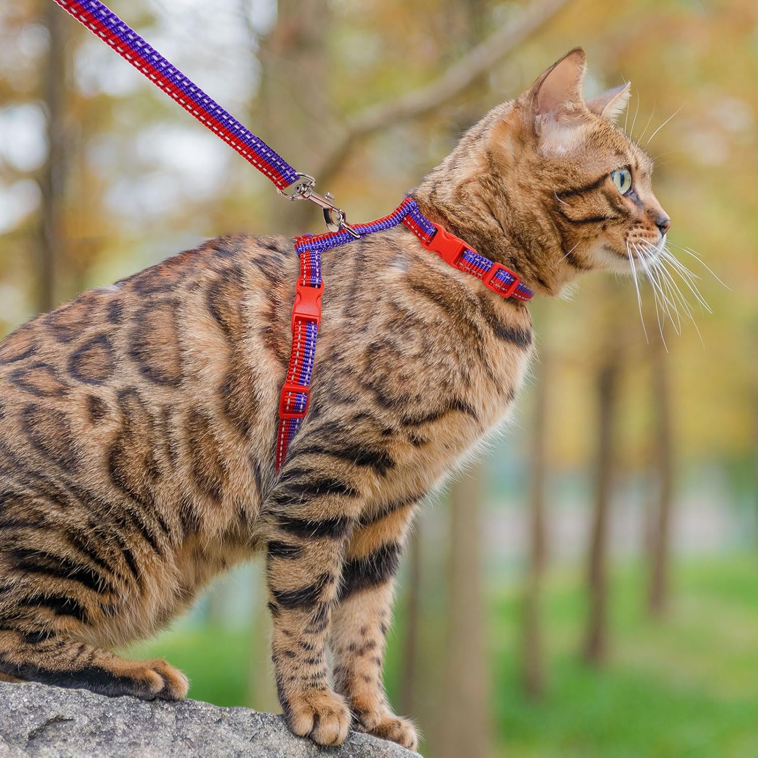 Регулируема котешка нагръдник и каишка PUPTECK, защитена от бягство каишка за котенца, разходка, пътуване, червено-синя