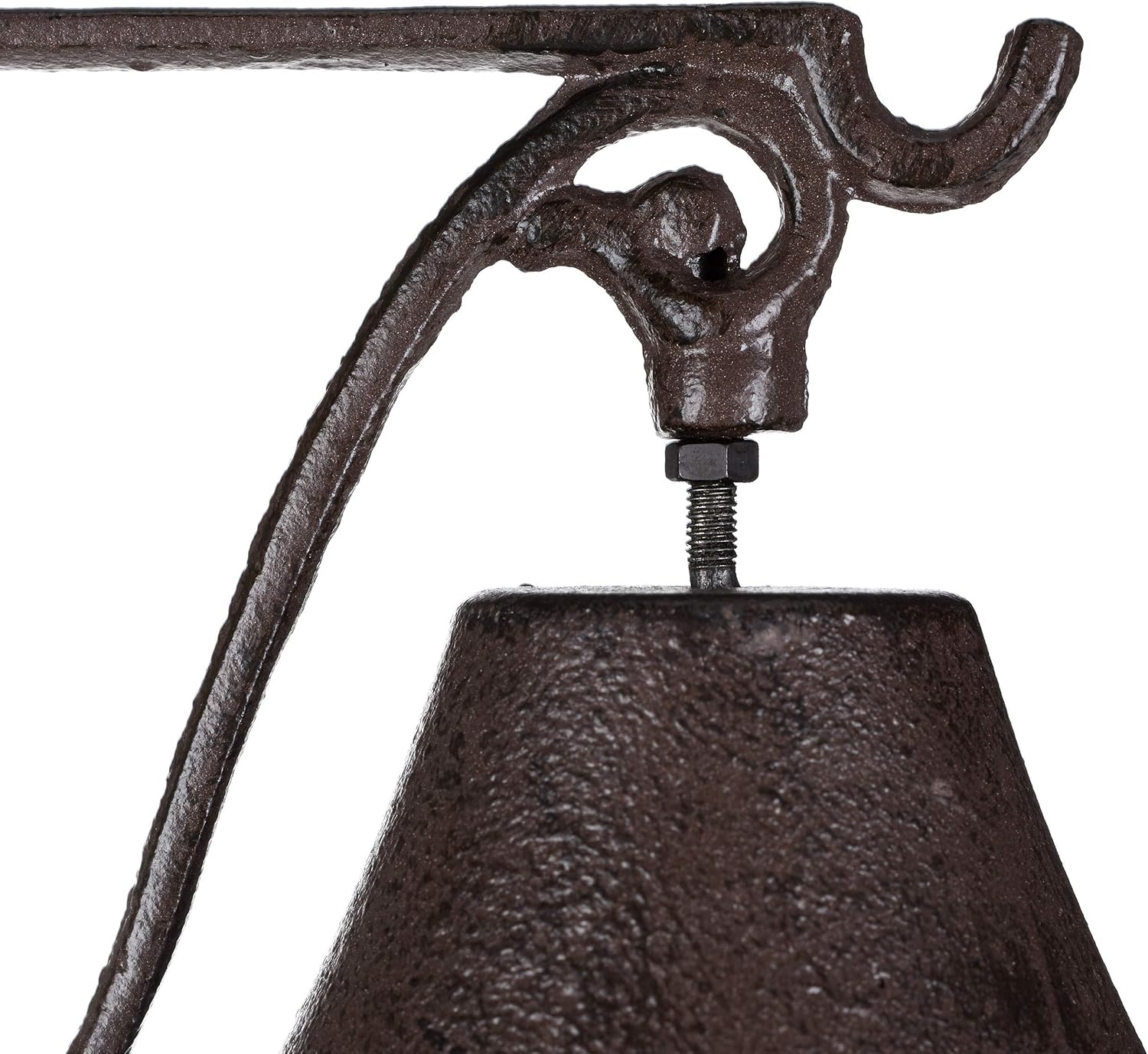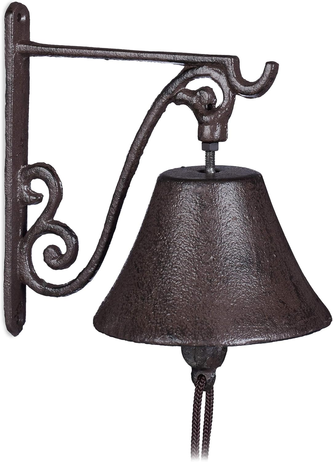 Този чугунен звънец с античен дизайн украсява входната зона, вътрешния двор и градината. Монтиран на стената до вратата и портата, звънецът не само създава приветлива атмосфера, но със своя ярък и силен звън може да се използва и за призоваване на приятели и семейство. Железният звънец, в носталгичен селски стил, излъчва автентичен винтидж чар и украсява вашето външно пространство. Благодарение на двата предварително пробити отвора, устойчивият на атмосферни влияния метален звънец е лесен за монтаж.