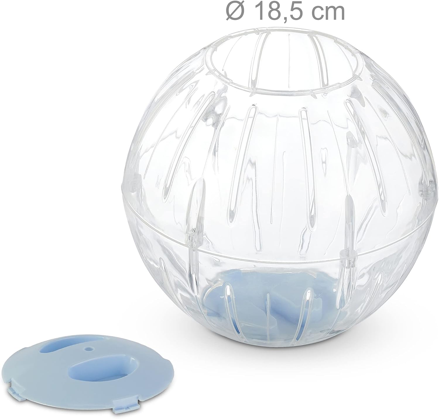 • Детайли: състезателна топка за хамстери с отвори за въздух и 2 сини капака - Размер: приблизително 18,5 см - Бързо сглобяване