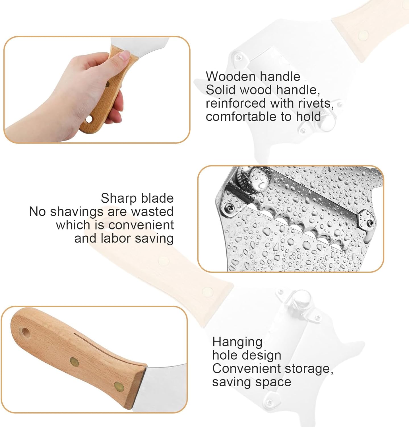 1. Материал: Неръждаема стомана + букова дървесина