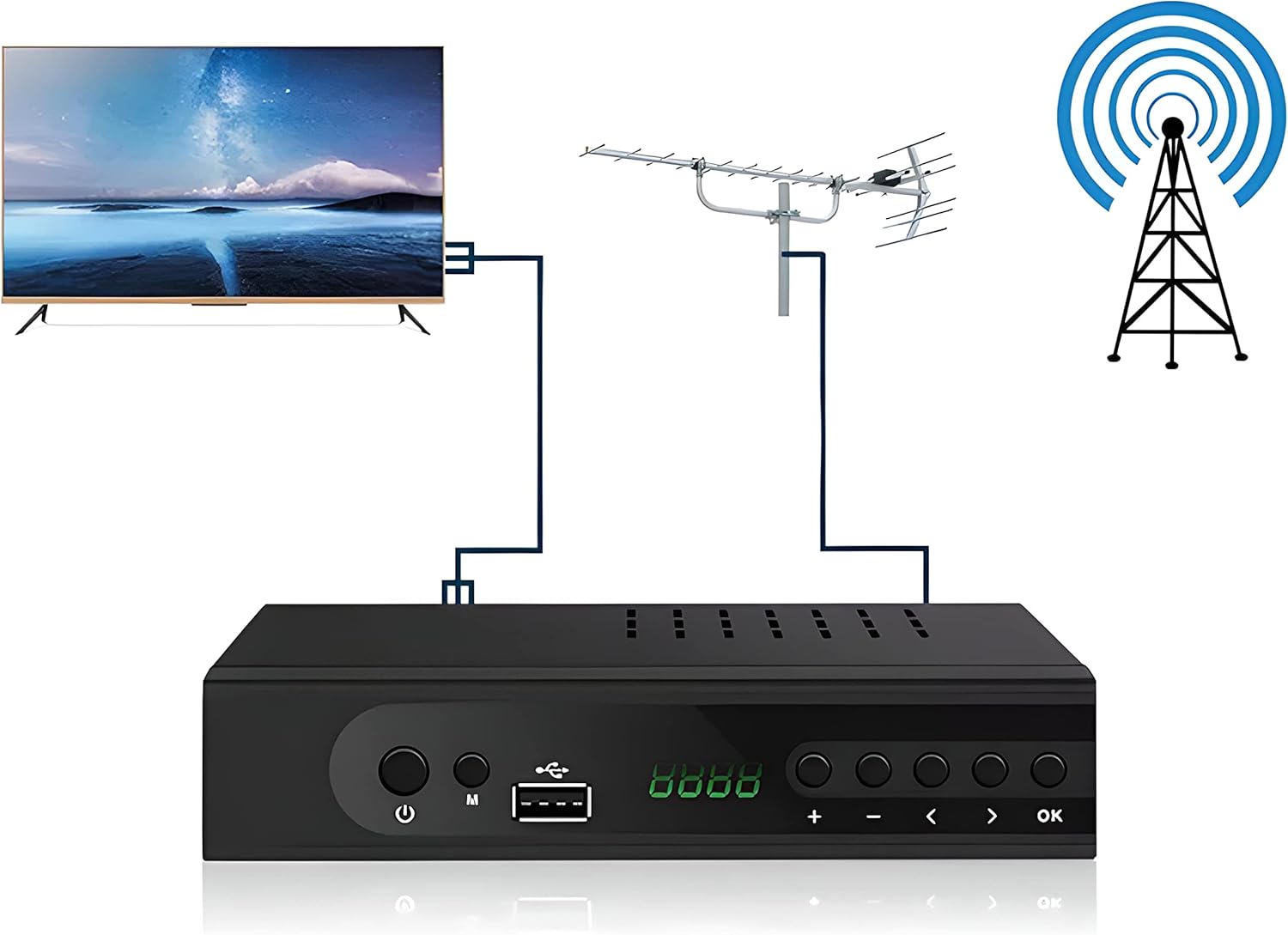 Eine hochwertige TV-Set-Top-Box garantiert den Empfang aller digitalen terrestrischen Fernsehprogramme. Die Set-Top-Box unterstützt DVB-T, DVB-T2 HEVC-Technologie. Das moderne Komprimierungsverfahren H.264, H.265 / HVEC ermöglicht Ihnen eine hohe Bildqualität bei deutlich reduzierter Bandbreite. Der eingebaute Dolby Digital Plus Sounddecoder sorgt für den Tonempfang am Fernseher.