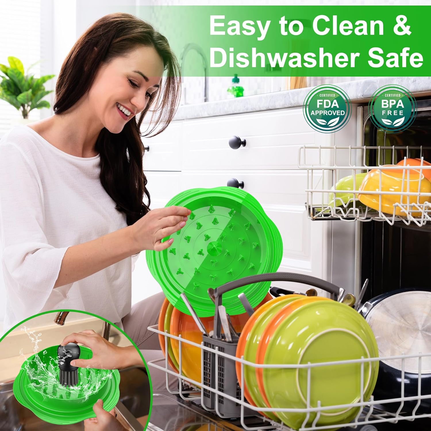 • Безопасна и лесна грижа: изработена от пластмаса без BPA, безопасна за храна, устойчива на топлина до 180°C. Може да се мие в съдомиялна машина и включва четка за лесно почистване - издръжлива и хигиенична.