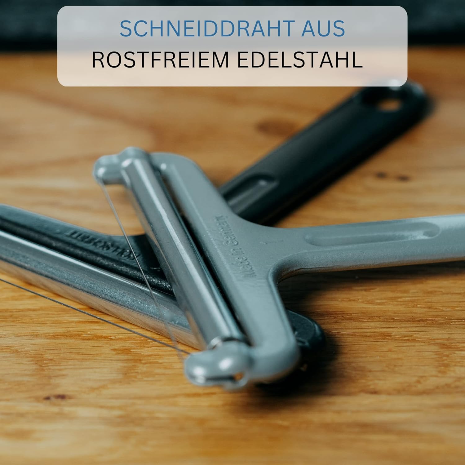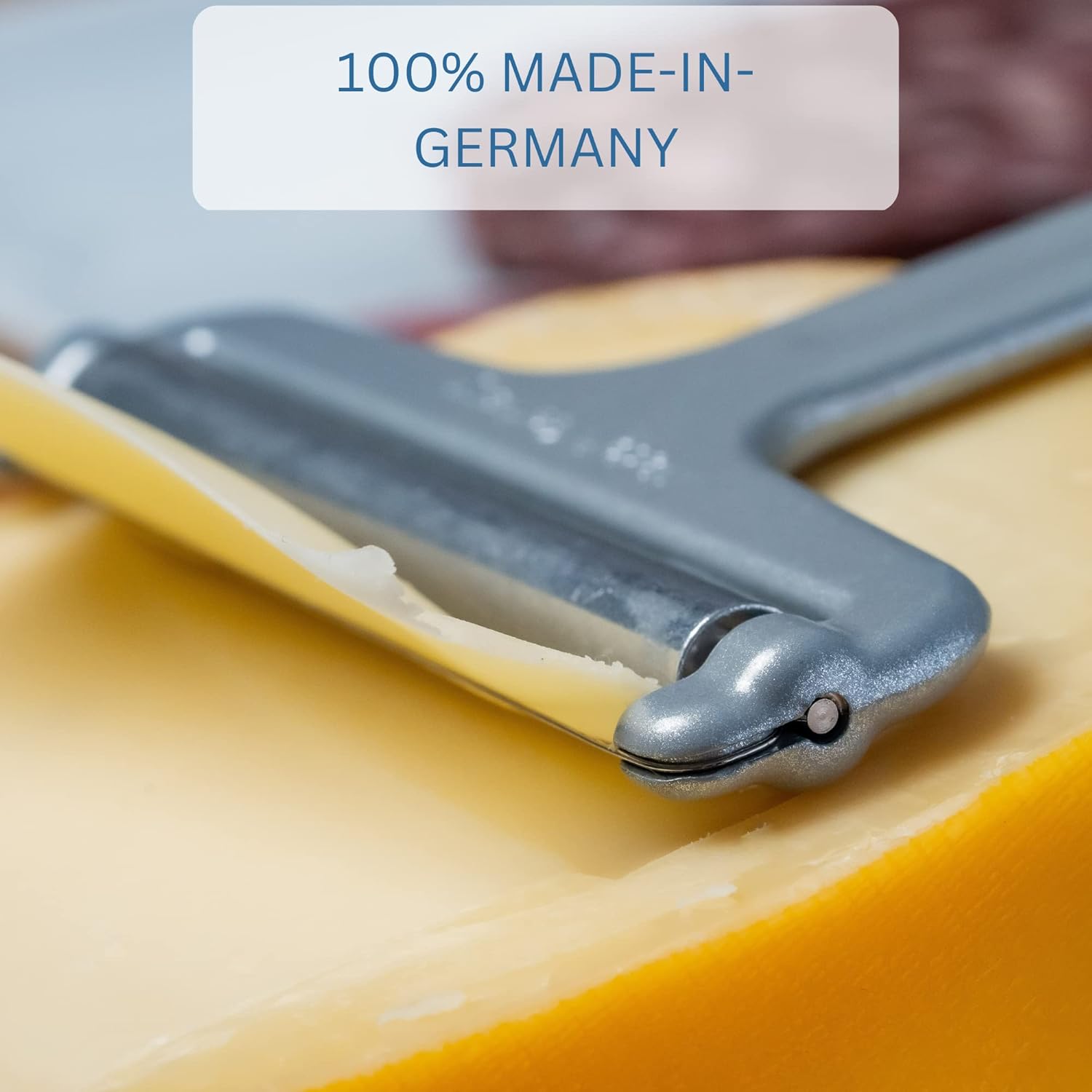 Ръчният ротационен резец е отличен за рязане на меки или средно твърди сирена като Гауда или Ементал. Острата режеща тел от неръждаема стомана произвежда равномерно нарязани парчета сирене. Дебелината на резена може да се регулира чрез накланяне на резеца. Удобната, заоблена алуминиева дръжка позволява лесна и бърза употреба. Ротационният резец не е подходящ за съдомиялна машина и може лесно да се почиства на ръка.