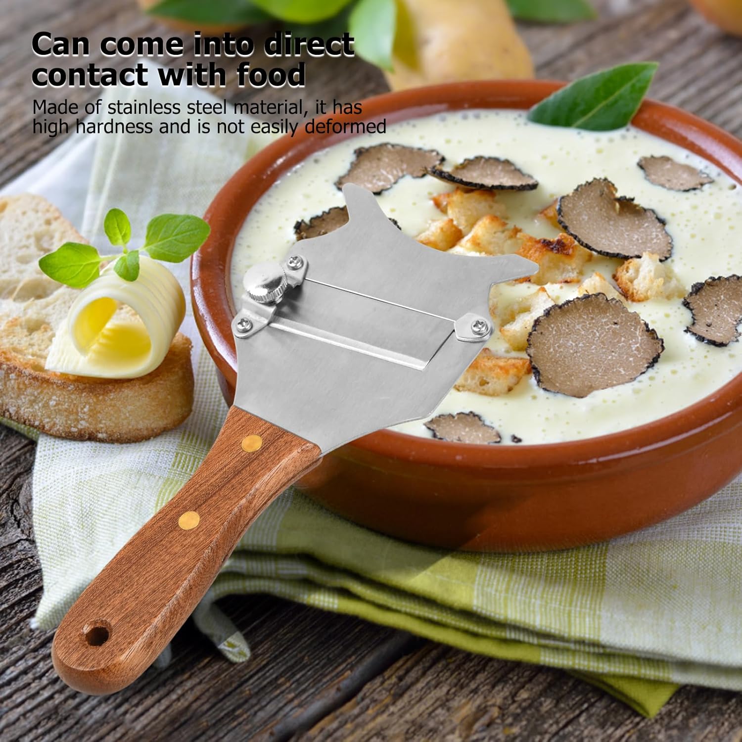 Резачката за трюфели е изработена от неръждаема стомана, устойчива е на корозия, ръжда, по-безопасна, подходяща за съдомиялна машина и лесна за почистване.