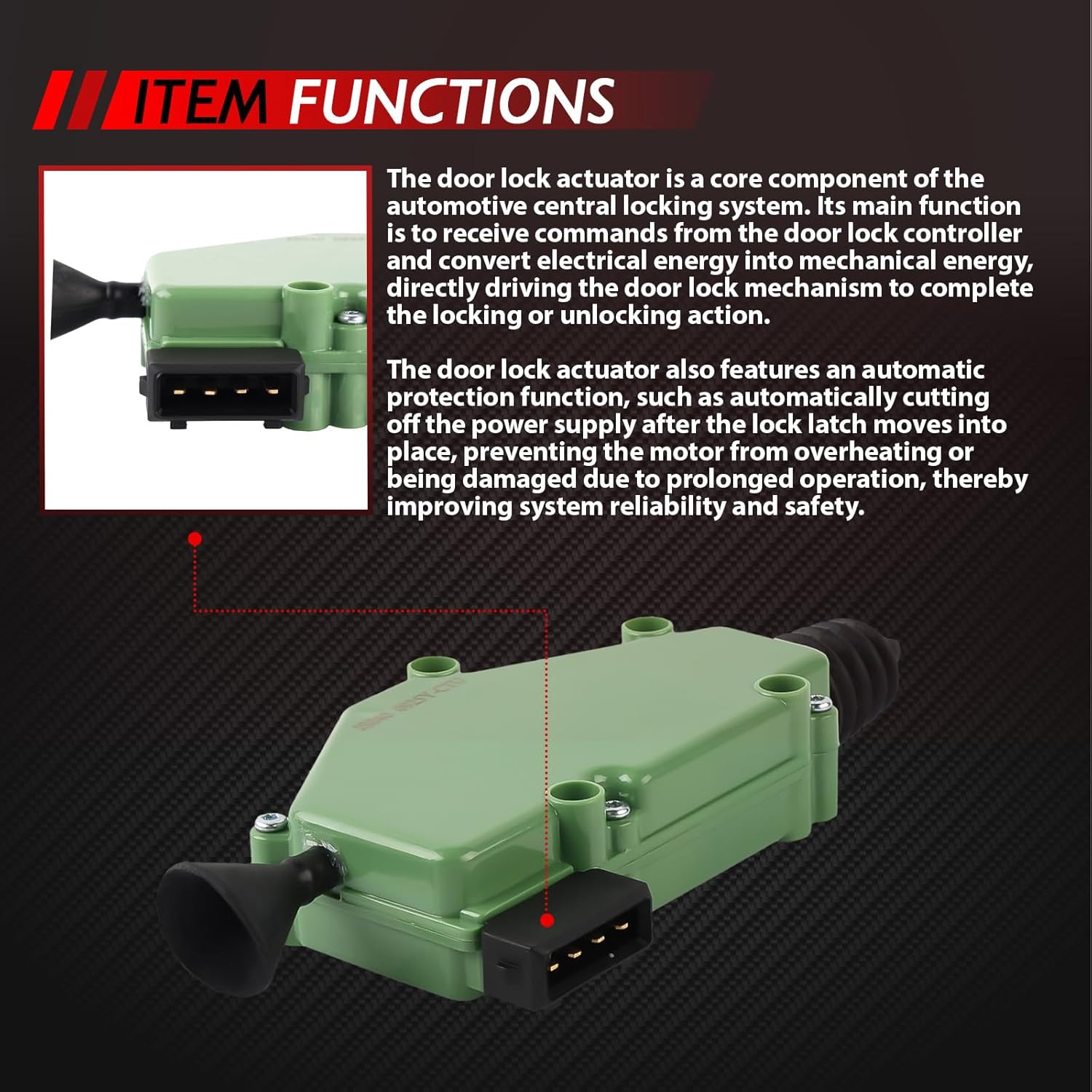 • 【Повишена сигурност】 Този задвижващ механизъм за заключване на врата 701959781 предлага ефективни функции за заключване и отключване и подобрява безопасността и удобството на автомобила чрез дистанционно или автоматично управление.