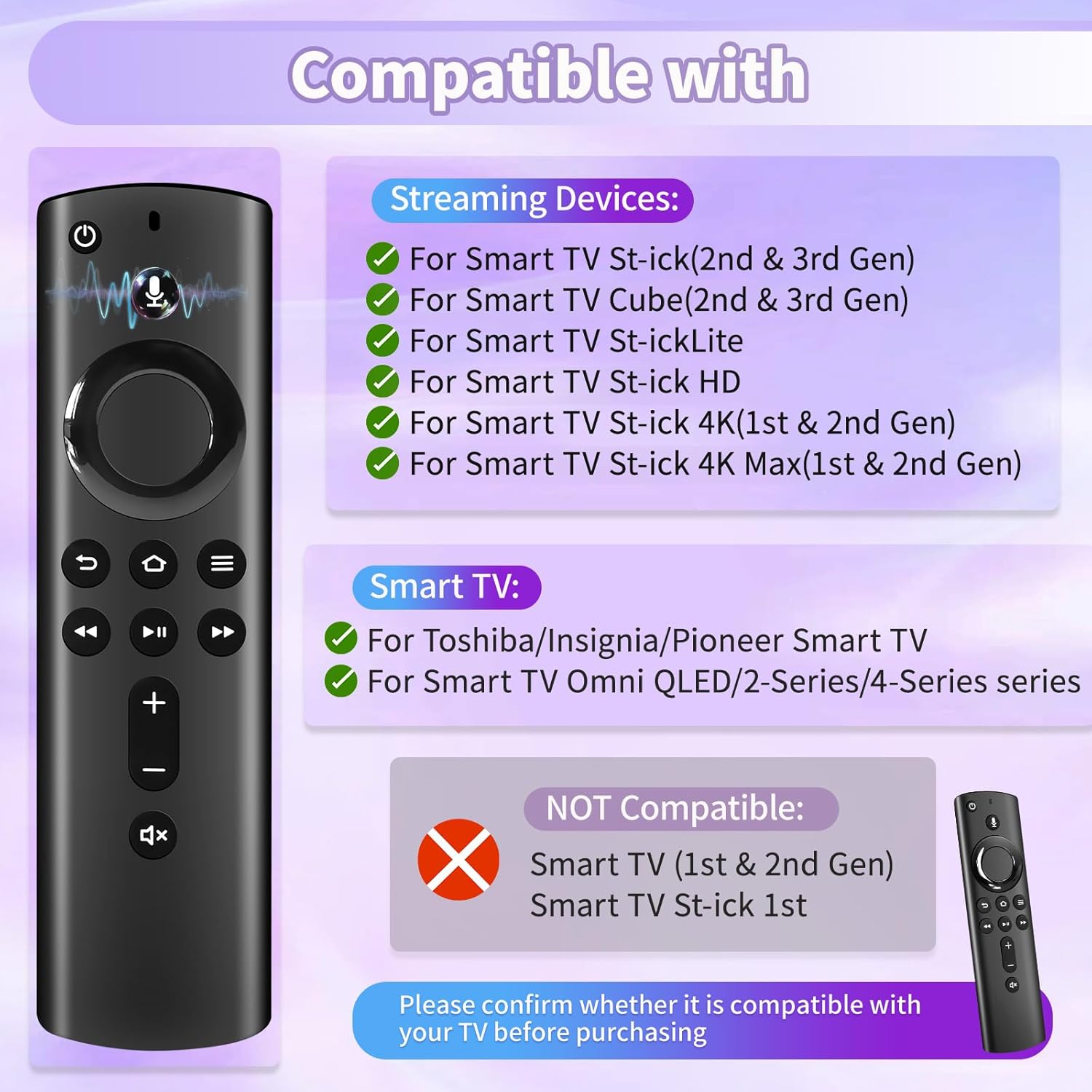 • Съвместимост: Това дистанционно управление е съвместимо с AMZ Fir-E TV stick 2-ро и 3-то поколение, Fir-e TV Stick 4K, F-ire TV Stick 4K Max, Fire TV Stick Lite, Fire-e TV Stick HD, Fire TV Cube 2-ро и 3-то поколение. Забележка: Не е съвместимо с телевизори Toshiba, Pioneer, Smart TV Omni серия, Smart TV 4 серия, TCL Smart TV, Samsung телевизори. Моля, проверете дали вашият модел телевизор е подходящ преди покупка.