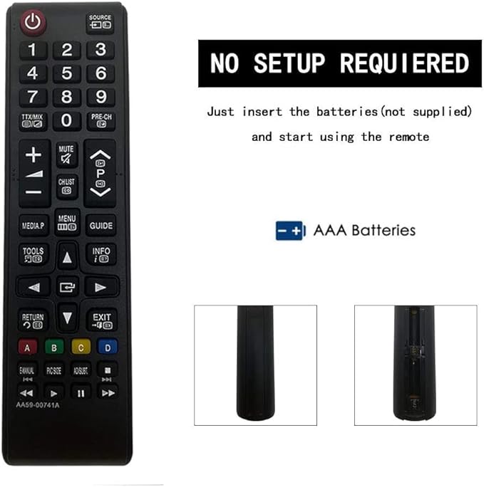 Дистанционното управление Samsung AA59-00741A е стандартно инфрачервено дистанционно управление за Samsung. Не е необходимо да правите никакви настройки, просто поставете батериите и започнете да използвате. Въпреки че не е оригинално дистанционно, това е заместител, специално създаден за Samsung Smart TV.
