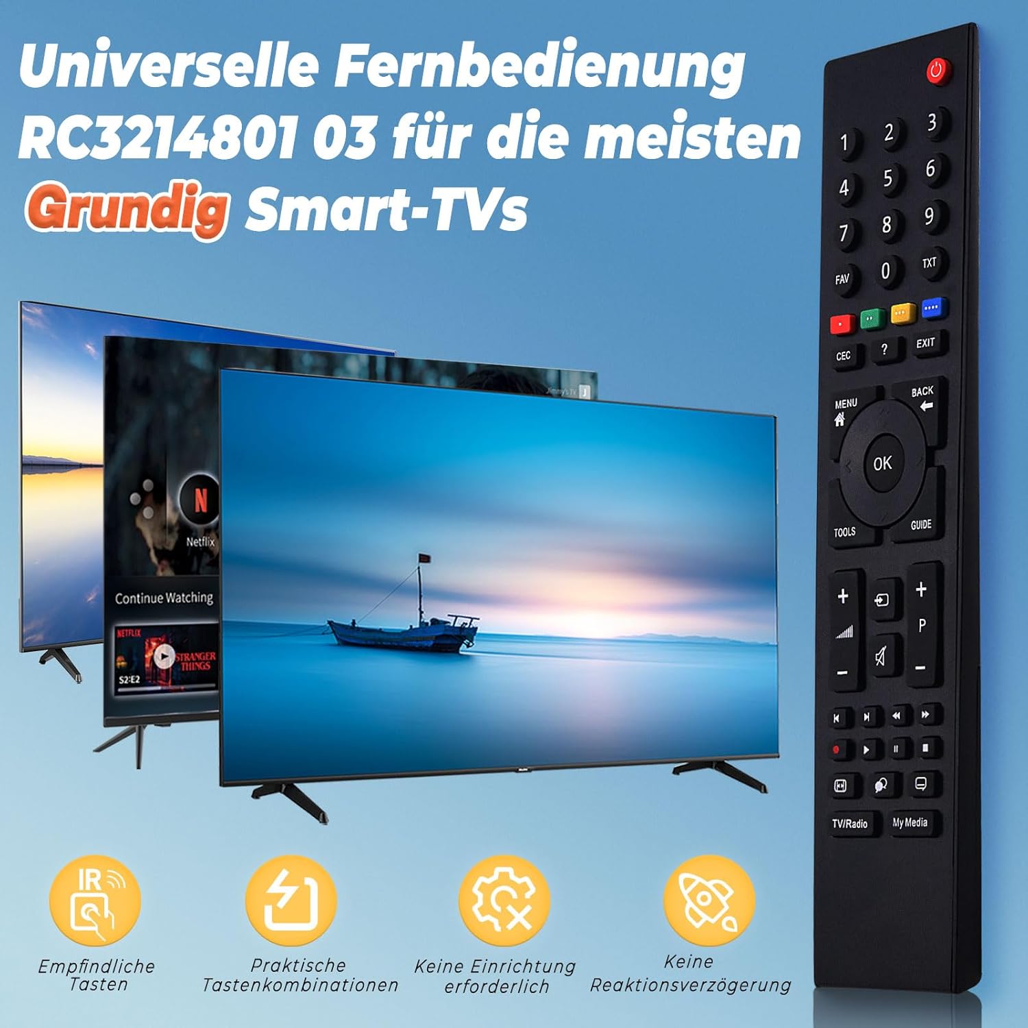 Резервно дистанционно управление за телевизор Grundig RC3214801 03, подходящо за Smart TV TP6187R TS1187R, дистанционно управление Grundig, не се изисква настройка.