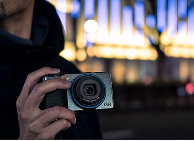 Features of the RICOH GR IIIx Urban Edition *Inspired by street photography that is on the asphalt in its element, the metallic grey housing has a unique texture created by repeated and complex painting processes. It is smooth but allows excellent grip, a combination of design and functionality. The navy blue lens ring equally symbolises an azure sky at the time of day, reflected in a puddle after a rain, and on the other side the neon lights of a city that never sleeps, and their diverse reflections and reflections. When switched off, the GRIIIx Urban Edition shows a special logo on the monitor, as well as a special graphic reminiscent of the asphalt of the road. *Various new features have been added, 1. A new exposure mode, "Priority for snapshot removal", has been added. If you set the snapshot distance and depth of field (DOF) in advance, you can retrieve the setting immediately. Especially in the "DOF3" setting, the aperture is adjusted so that the depth of field is close to the pan focusing setting, allowing faster shots. 2. Added "Auto Focus (center)" feature for enhanced control of street shots. This means that the automatic range AF works around the center of the image (9 zones), rather than the entire image. This prevents the camera from focusing on unintended areas, such as the ground, 3. The setting for the trigger has been extended with the "Enable AF" option. It is now possible to fix the exposure measurement only and not the exposure measurement by half pressing the shutter button. 4. "3.5m" has been added to the snapshot distance. 5. By tapping the monitor During the end of the image playback screen, image editing can be accessed immediately.