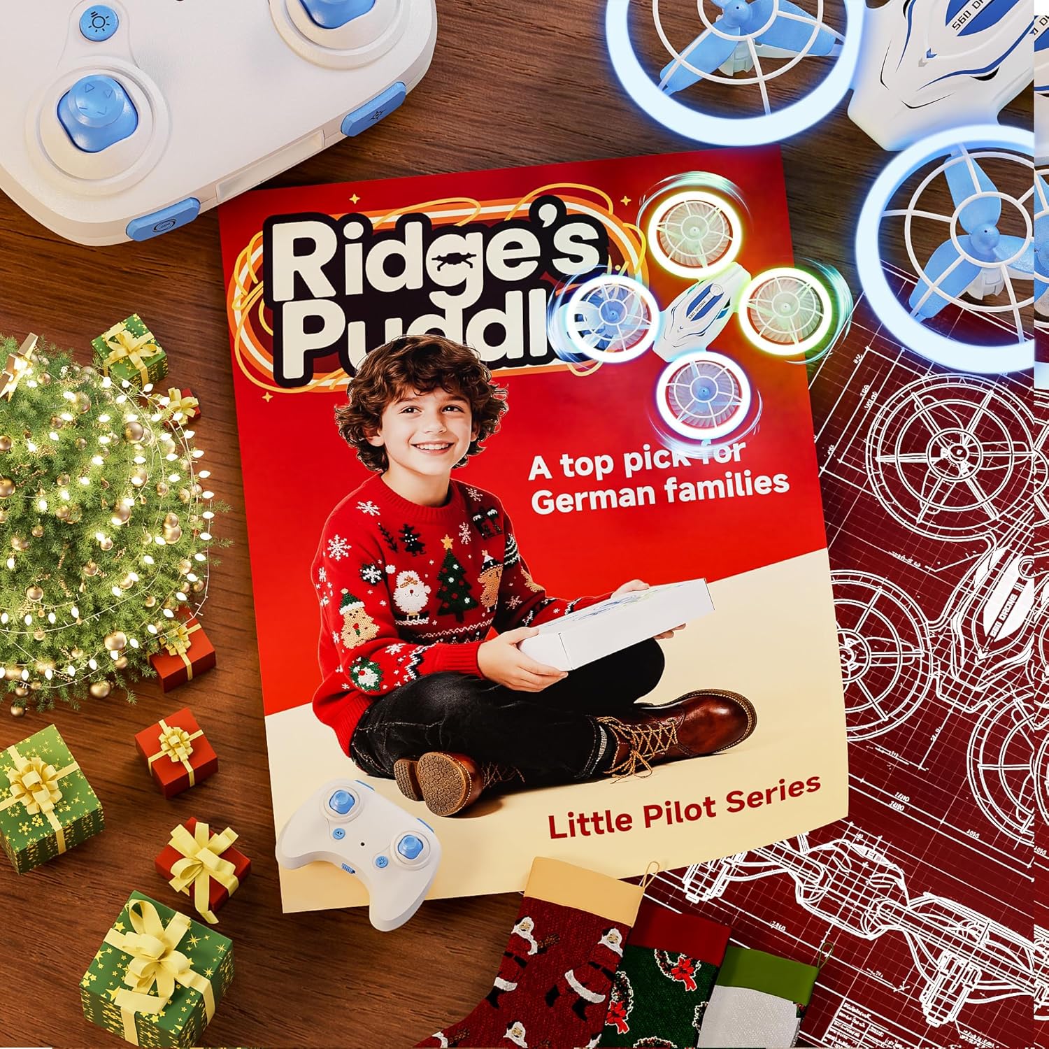 Ridge's Puddle S60 Дрон за деца - Мини дрон с LED светлини RC Квадрокоптер Играчка Подаръци за момчета Момичета Начинаещи 2 Батерии