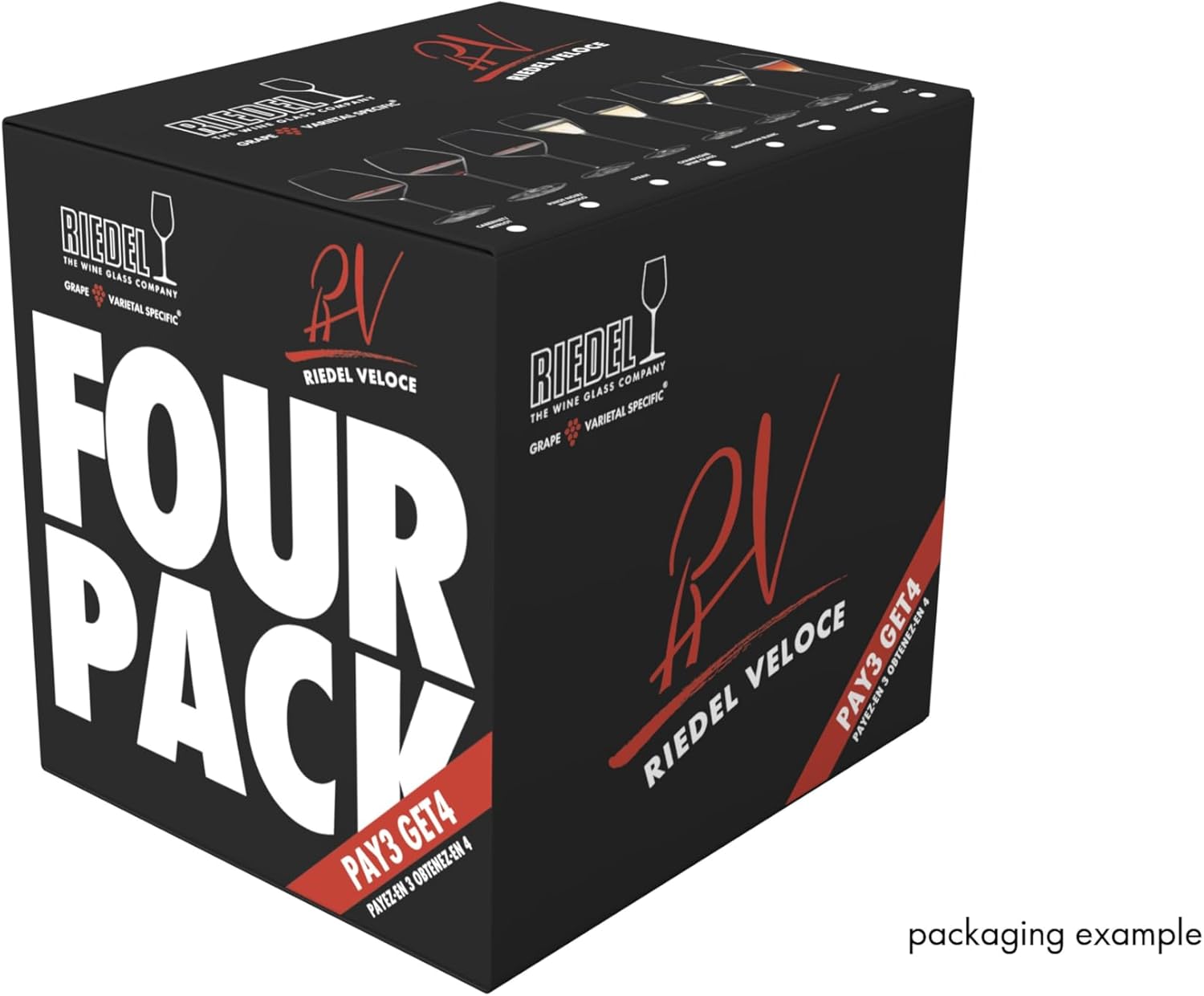 Чашата за Каберне е идеална за плътни, комплексни червени вина с високо съдържание на танини. Тази форма на чашата е новоразработена като част от тази колекция. Тази чаша с форма на диамант е идеална за големи и мощни вина от Новия свят, тъй като екстремните ъгли осигуряват повече място за развитие на ароматите. Щедрата форма на тази чаша акцентира върху плодовите нотки, изглажда суровите нотки и горчивината на танините и помага за балансиране на виното. Този продукт е изработен от прозрачно кристално стъкло. RIEDEL Veloce е впечатляваща нова разработка, базирана на най-съвременна технология от собствената фабрика на RIEDEL. Серията използва най-новите производствени технологии, за да създава стъклени изделия, които се усещат като ръчно изработени, но предлагат прецизността на машинното производство. Със своя по-лек и фин профил, тези чаши са идеални за вина от Новия свят и разполагат с основна плоча, гравирана с препоръчителния сорт грозде. Този продукт е първокласно машинно произведен. "PREMIUM" определя предимството на машинно издухана чаша RIEDEL пред ръчно изработената. Разликата се състои в прецизността. Този артикул е подходящ за съдомиялна машина. Този комплект се предлага на атрактивна цена, съдържащ 4 продукта на цената на 3.