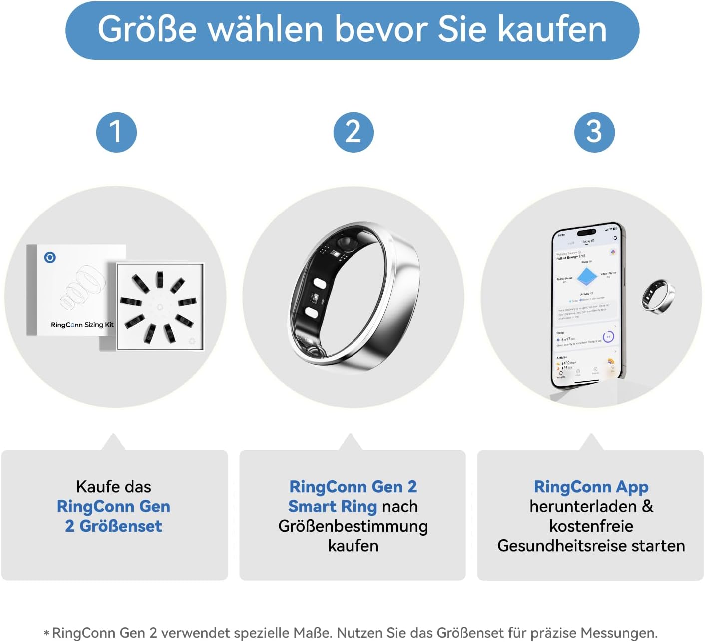 • Какво получавате: RingConn Smart Ring Gen 2, 1 м/3,3 фута USB-C към USB-C кабел, ръководство за потребителя (английски език не е гарантиран).