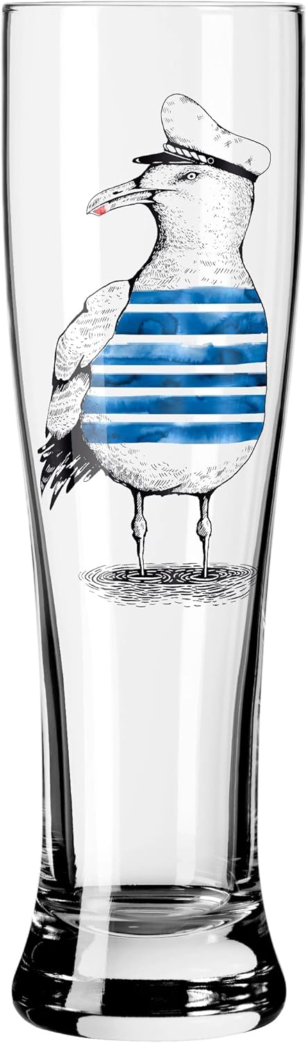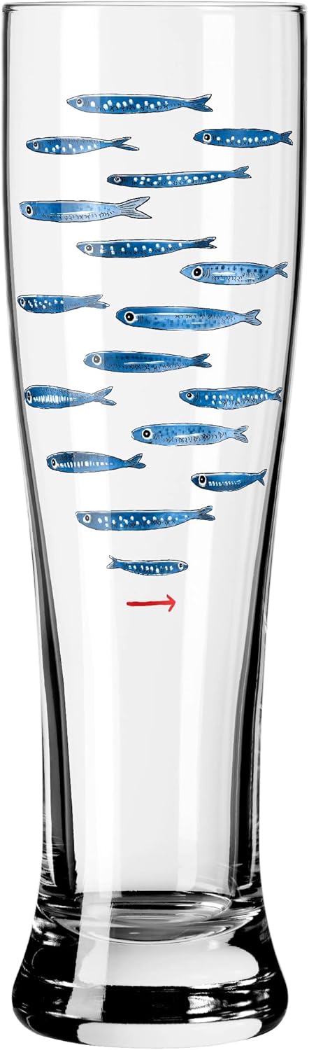 Чайки и сардини. Дизайнът игриво съчетава класически природни мотиви, които са представени върху чашите за пшенична бира с модерни линии и отличителни детайли по освежаващо дързък начин.