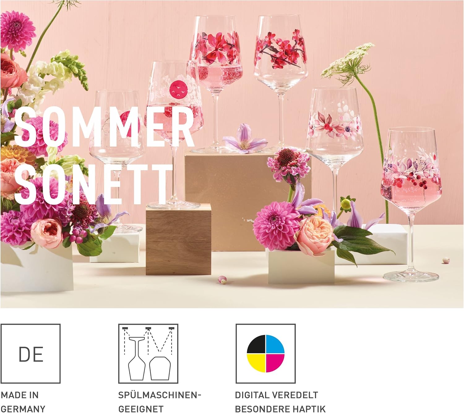 Последните черешови цветове увяхват и меките вечери под открито небе се редуват с спокойни следобеди край водата. Лятото сега задава ритъм на живота, биейки в такт с новооткрита енергия и придавайки му много специален звук. Освежаващо хладна напитка е винаги под ръка – понякога газирана, понякога сладка, понякога тръпчива – и има много щастливи чувства, които да запазим през по-студените месеци. Sommersonett е уловила това най-красиво време на годината и го е пресъздала с прецизни детайли с флорални мотиви в нежни нюанси на розово.