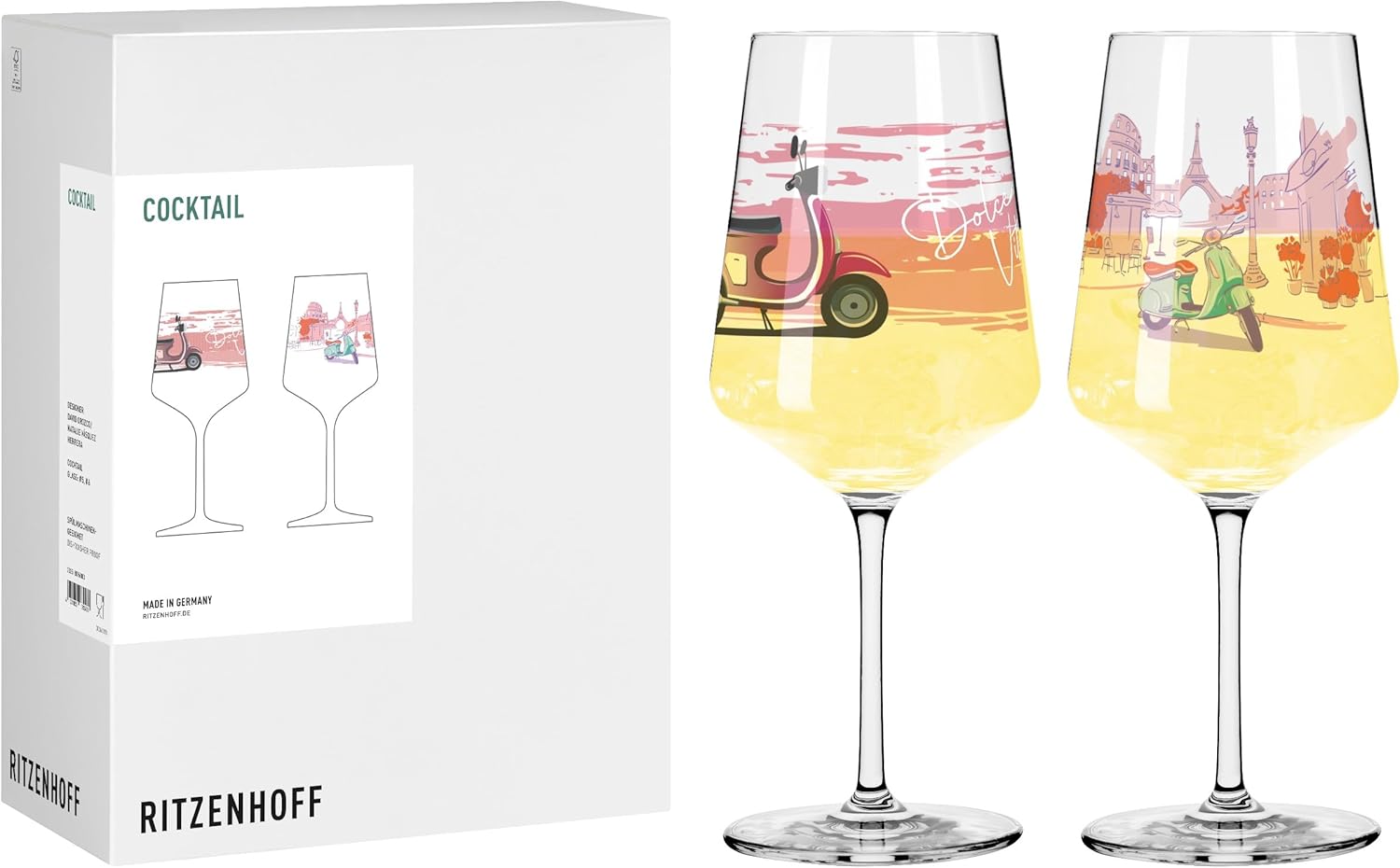 RITZENHOFF 8096003 Чаша за коктейл 500 мл, Комплект от 2, Серия Explorer, 2 части с мотив Vespa, многоцветна - Произведено в Германия