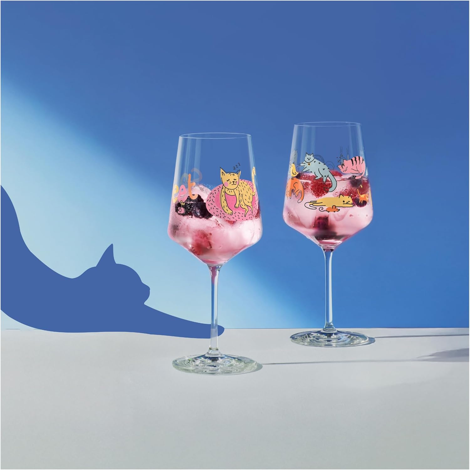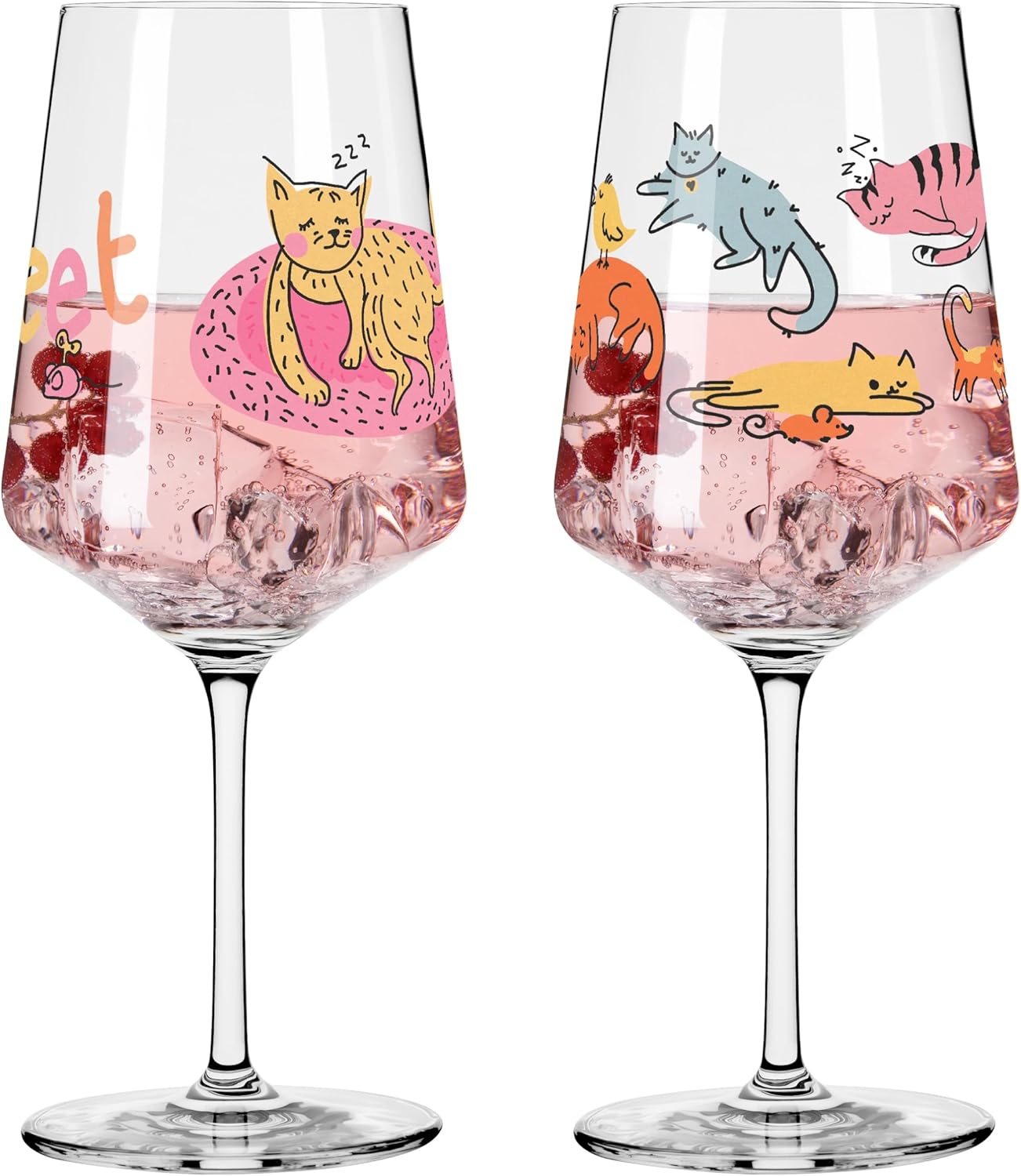 RITZENHOFF 8106003 Комплект от 2 чаши за коктейл, 600 мл, серия Animal Happy, 2 броя с цветен мотив на котка - Произведено в Германия