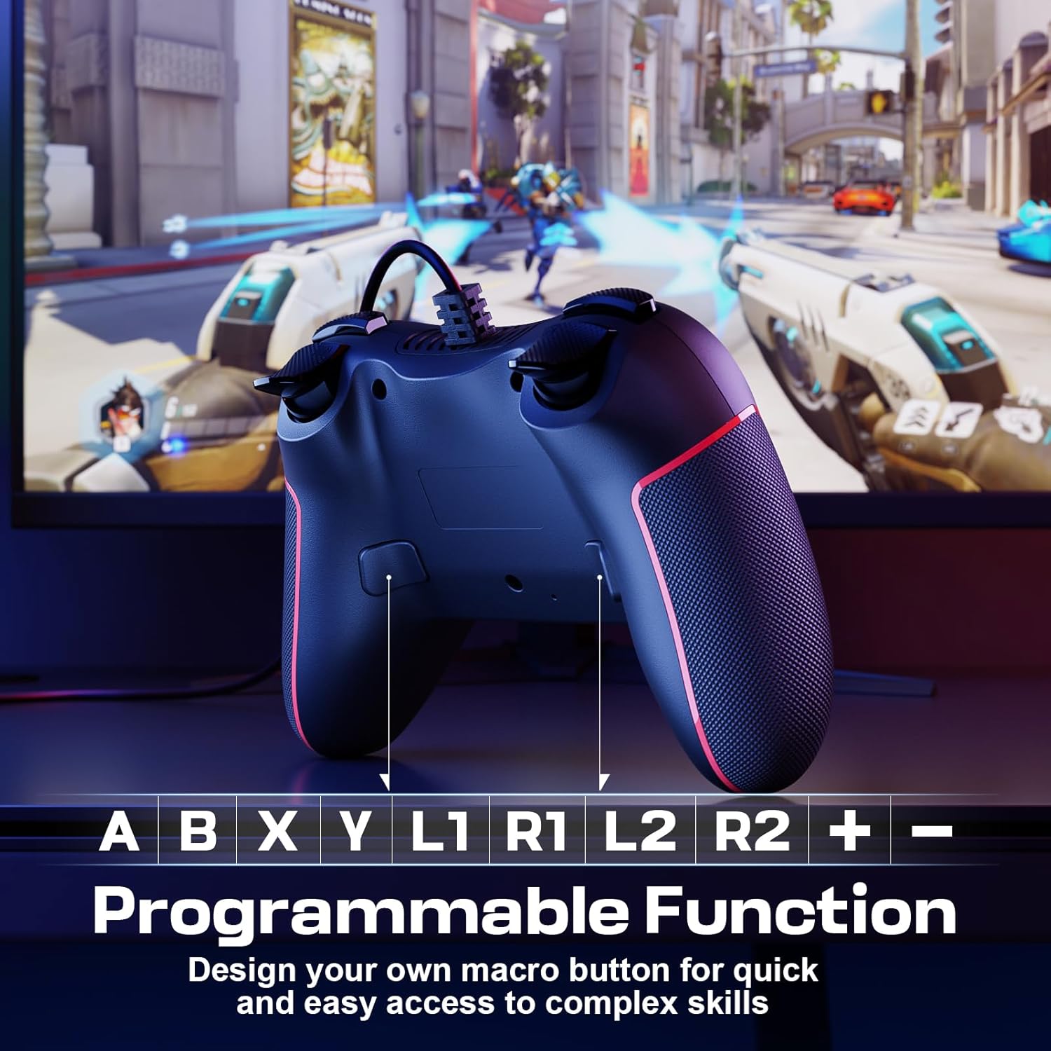RivalPlay PC контролер с 2-бутонно картографиране, кабелен джойстик, съвместим с Win (7/8/10/11) с Plug-and-Play двойна вибрация