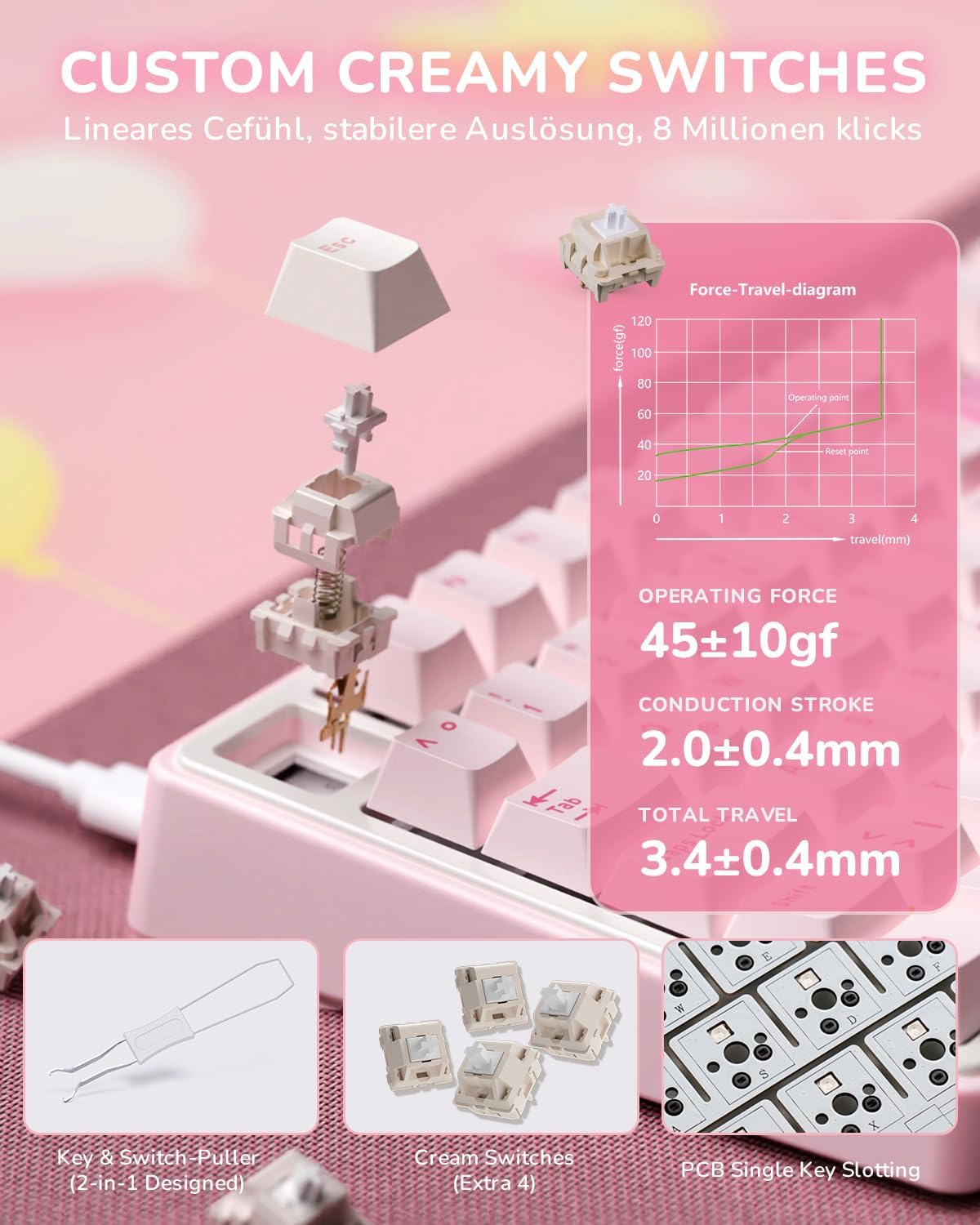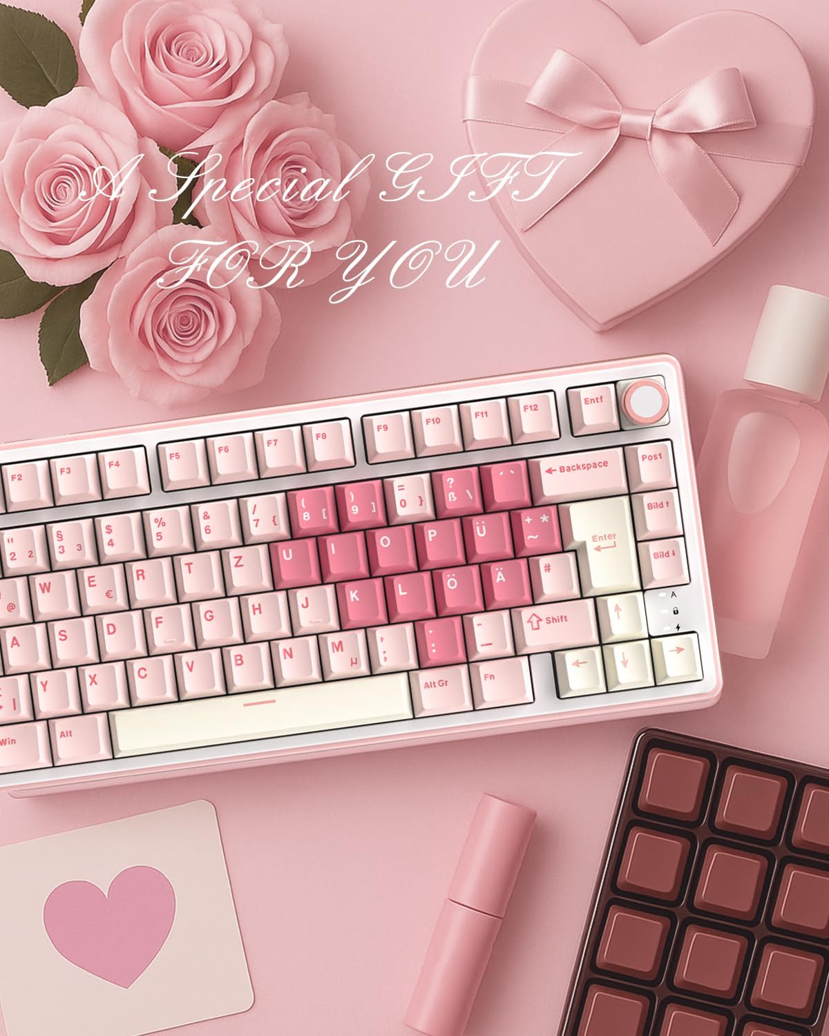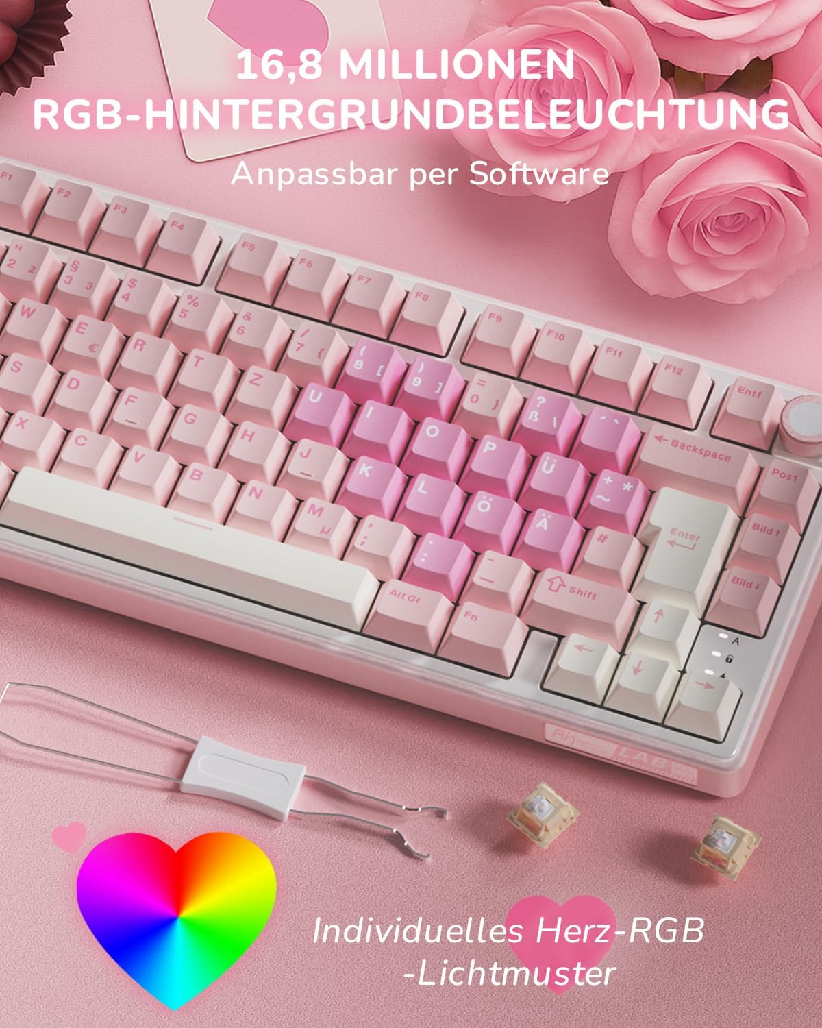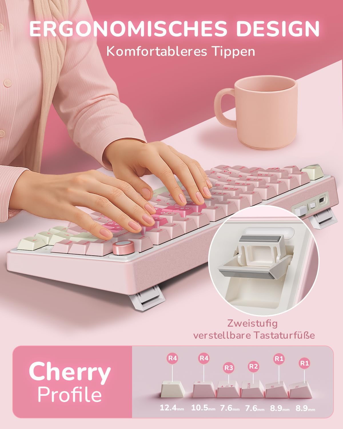 RK ROYAL KLUDGE R75 Геймърска клавиатура безжична, 75% уплътнение, механична клавиатура QWERTZ TKL с бутони, Bluetooth/2.4G/USB-C RGB, PBT капачки на клавишите, линейни кремави превключватели с възможност за гореща замяна