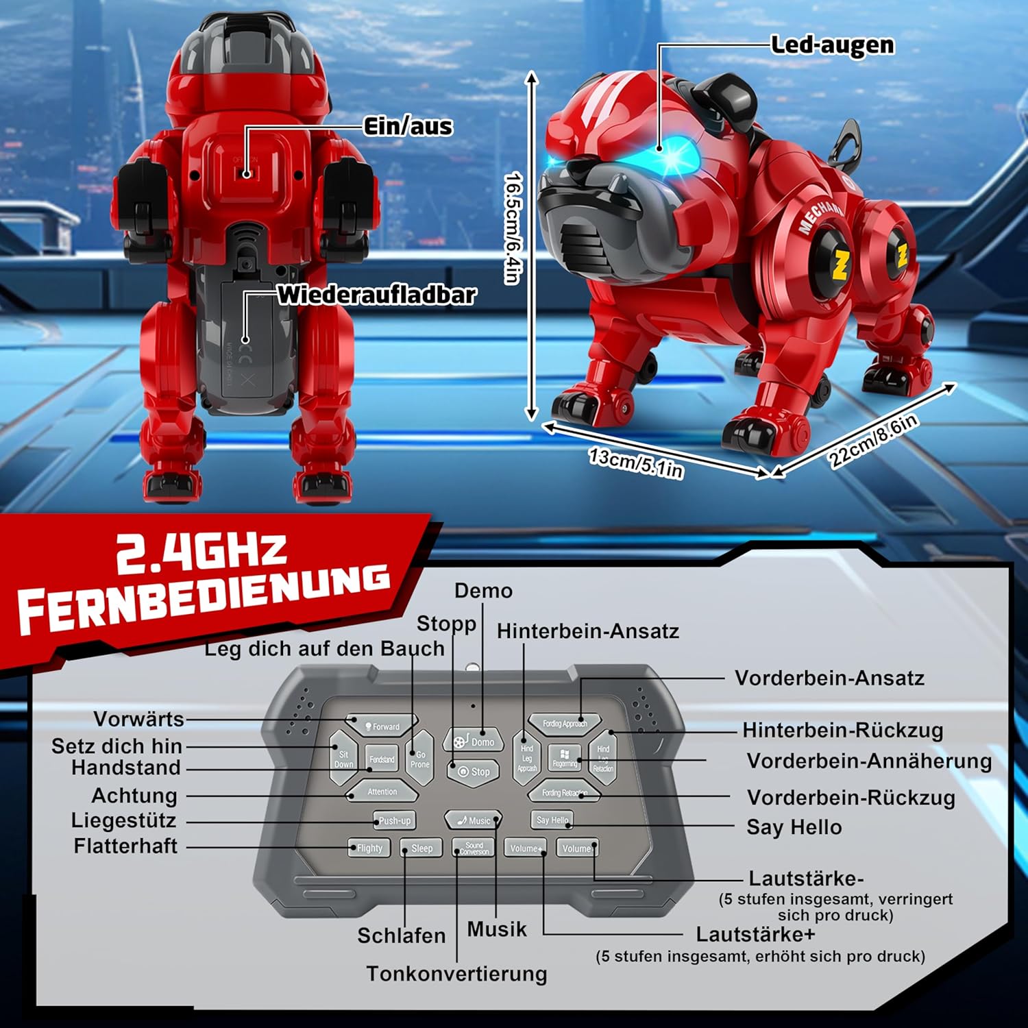 Робот куче за деца, робот с дистанционно управление, презареждащ се програмируем каскадьорски робот куче с функция за пеене, танци и докосване