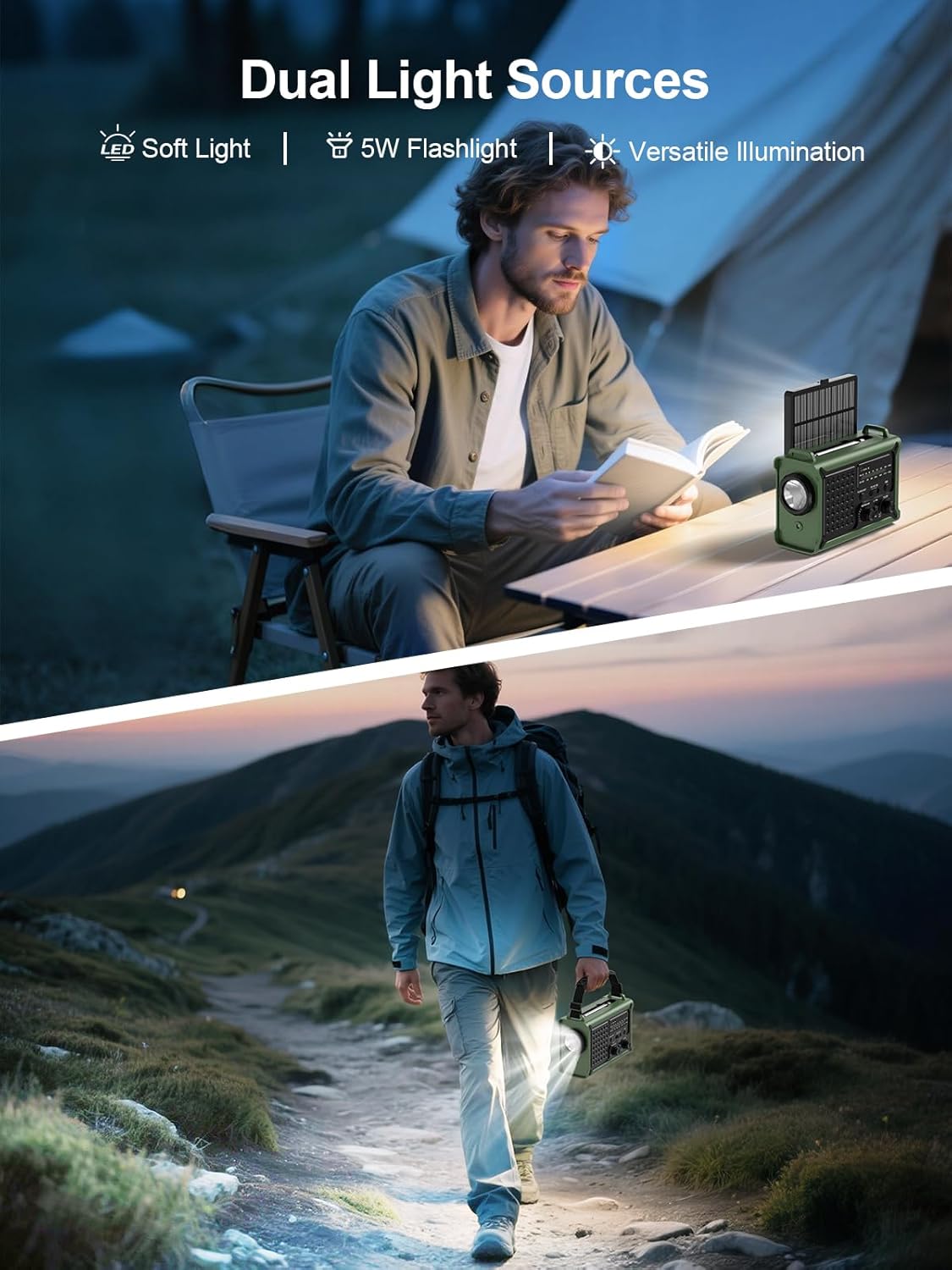 • ️Бързо зареждане със слънчева енергия: Това аварийно радио, захранвано със слънчева енергия, има голям соларен панел от 8500 мм² и се зарежда до 4 пъти по-бързо от конвенционалните модели. Идеално за къмпинг, туризъм и спешни случаи - перфектно за вашия авариен комплект без електрически контакт.