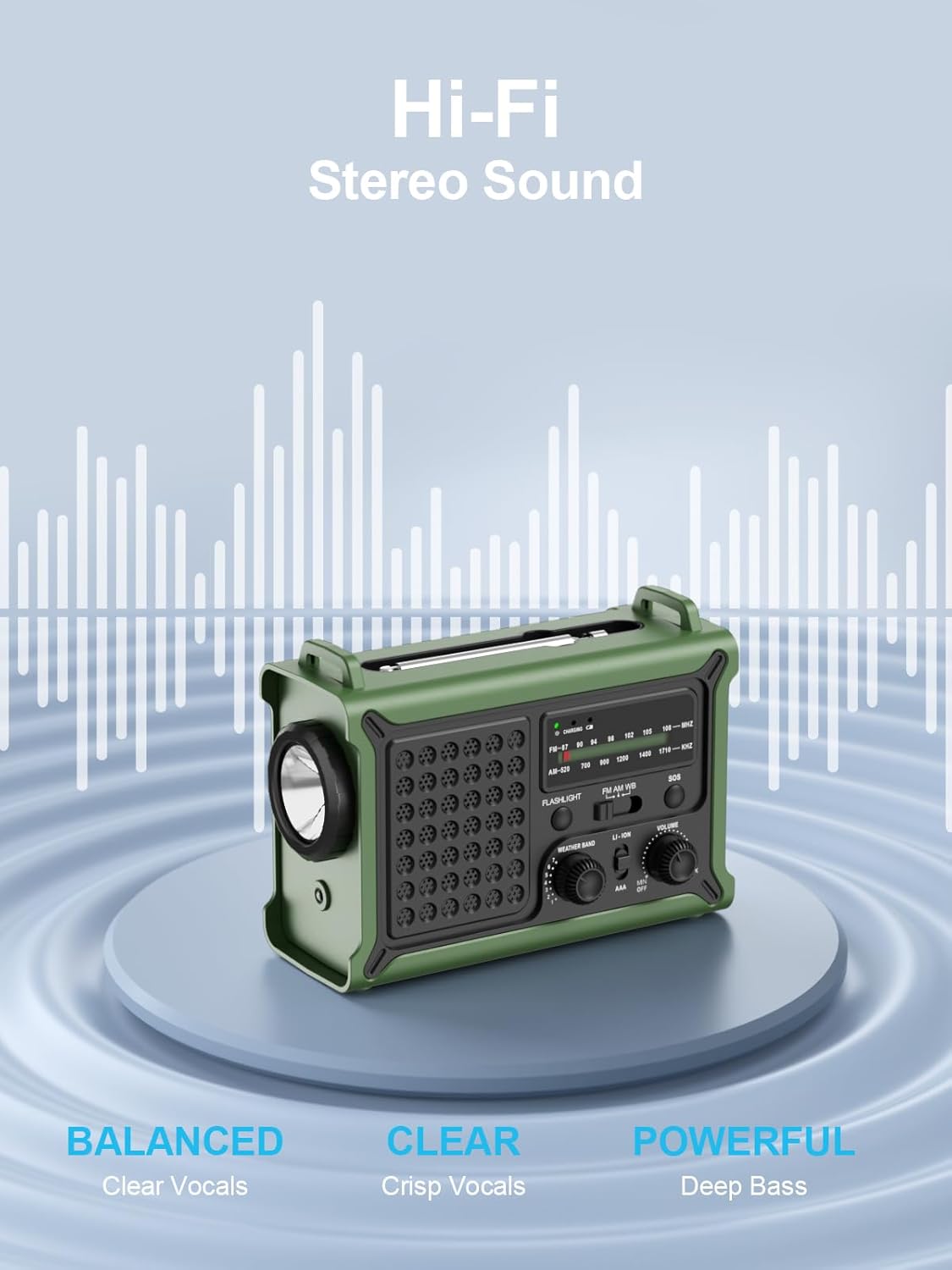 • Ясен и балансиран звук: в сравнение с много малки радиостанции за оцеляване, тази преносима радиостанция осигурява ясен и богат звук за музика, предупреждения за времето и съобщения за спешни случаи. Без шум или бръмчене, само чисто аудио качество, когато е необходимо.