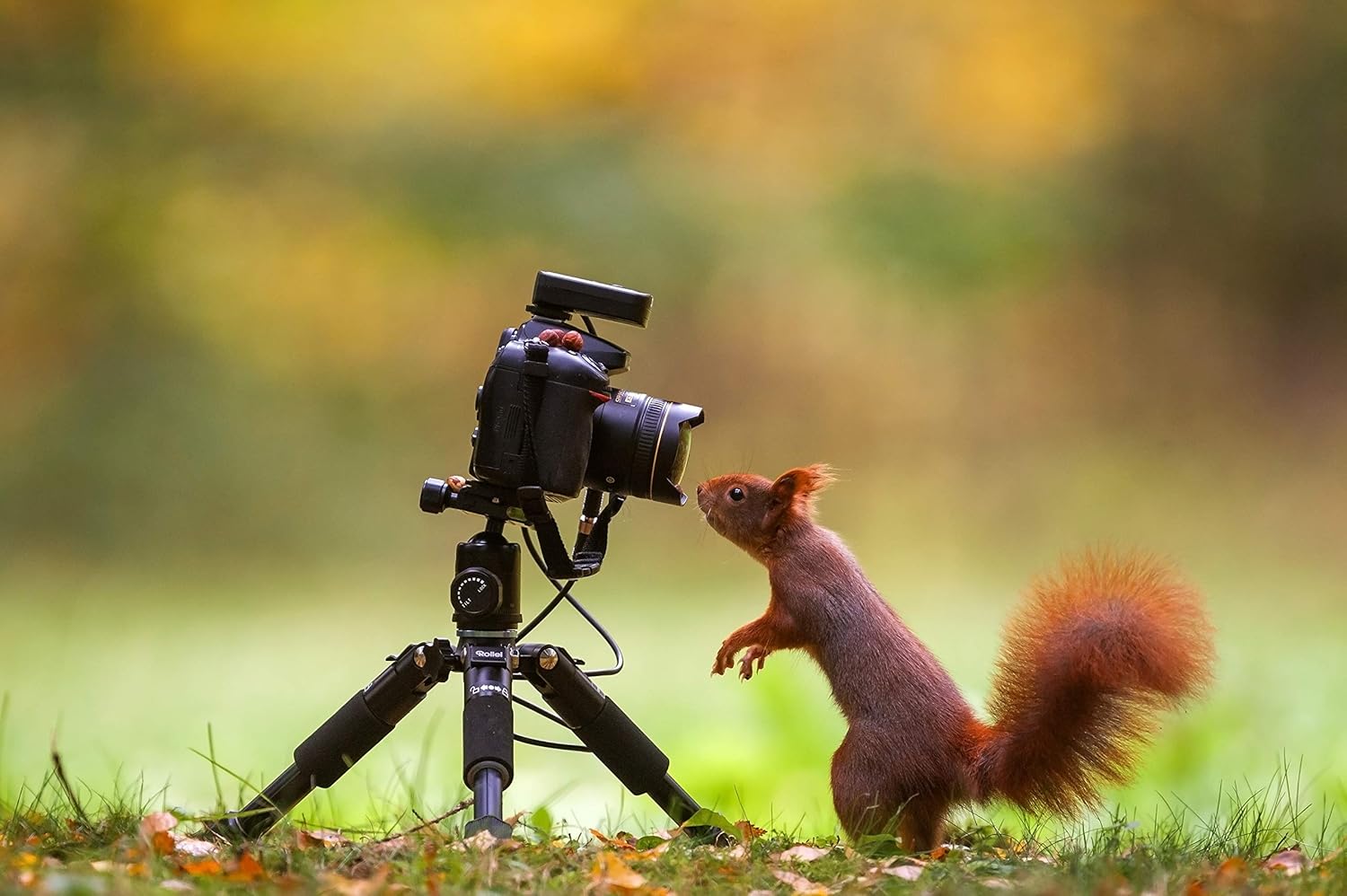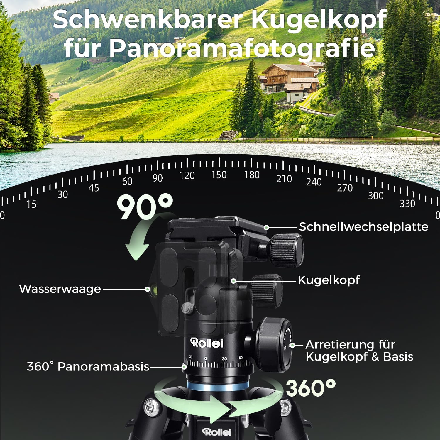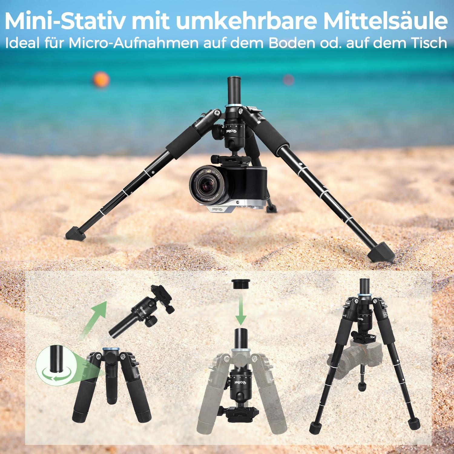 Rollei Compact Traveler Mini M1, мини статив за фотоапарат, изработен от алуминий, 49 см, лек настолен статив за пътуване, малък с Arca Swiss сферична глава, компактен настолен статив за DSLR, черен, малък статив, мини статив