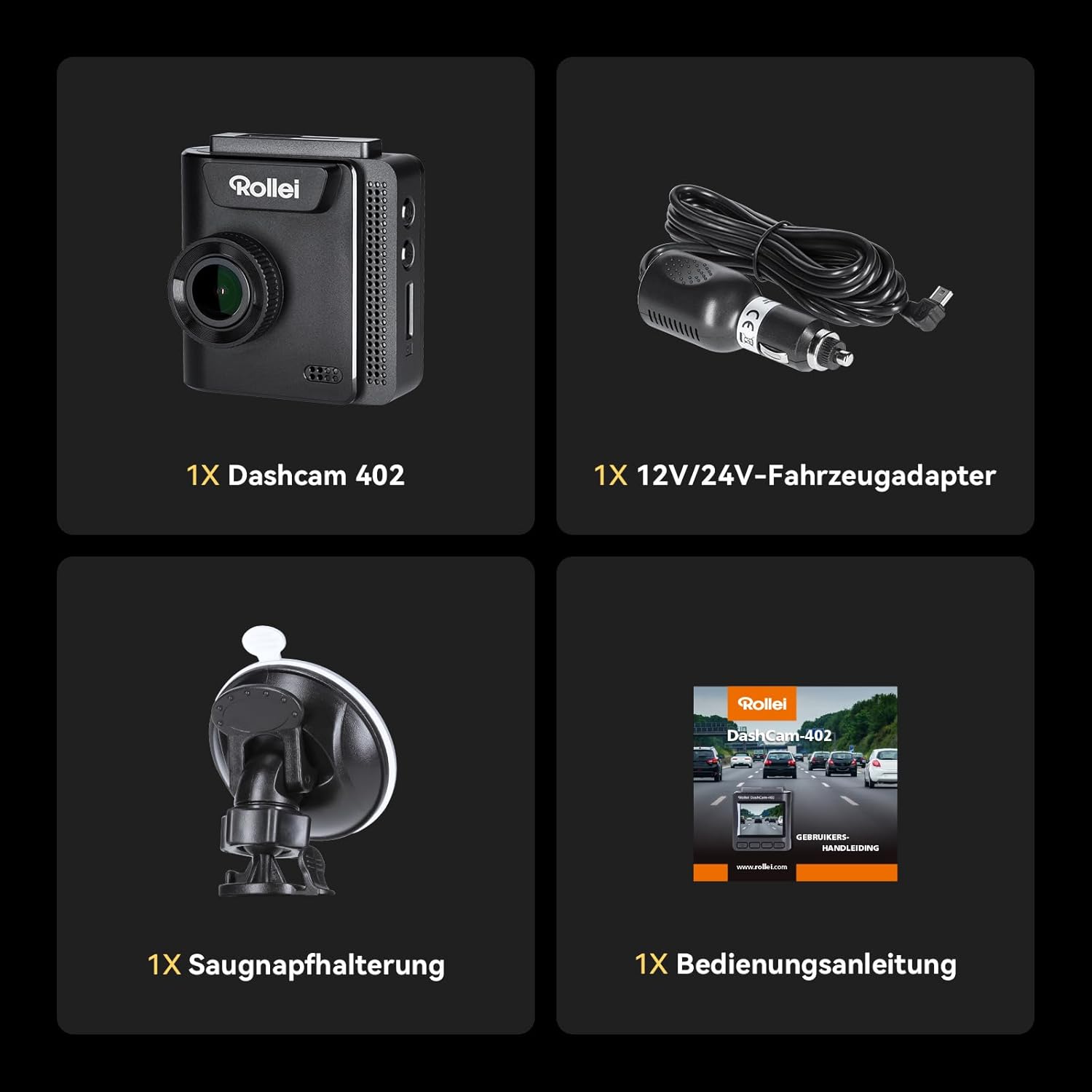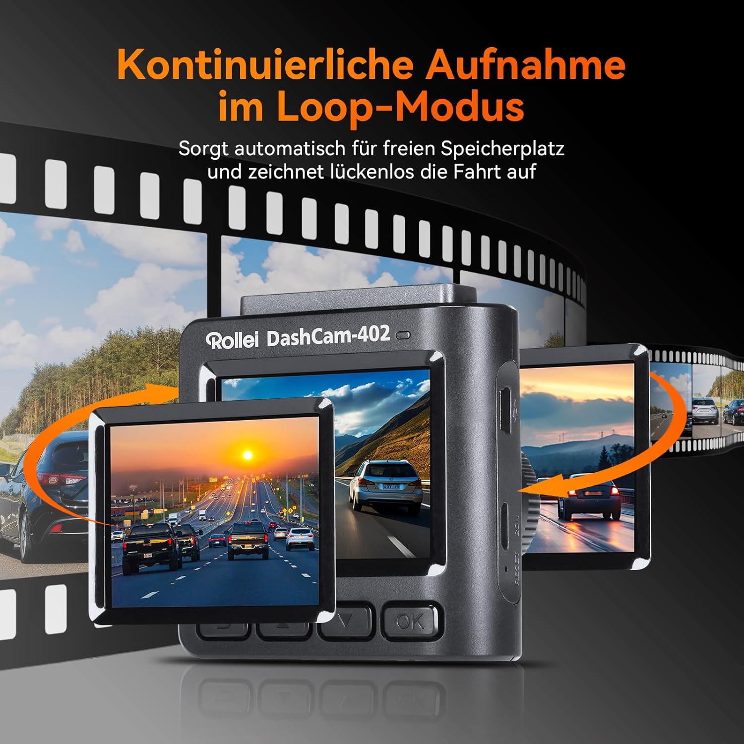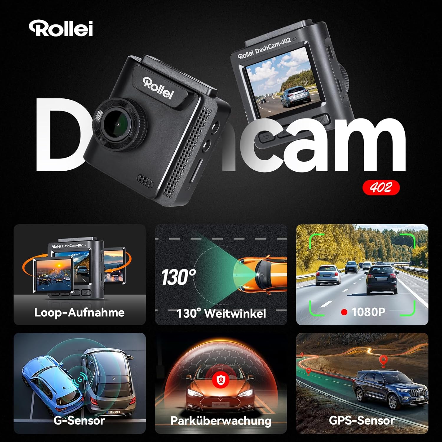 Rollei Dashcam 402 с GPS и G-сензор | Предна автомобилна камера, отговаряща на изискванията на закона | 1080p Full HD | Автомобилна камера за наблюдение и паркиране | Видеорегистратор с функция за цикличен запис