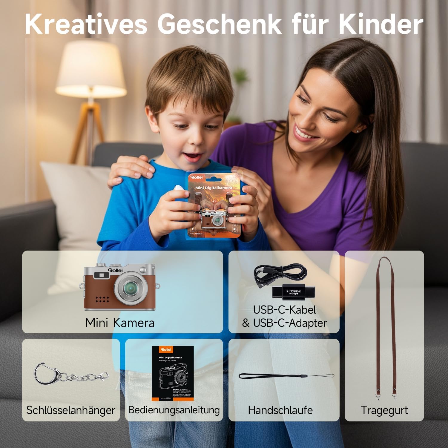 Rollei Mini Digital Camera Vintage Brown, 1080P FHD Small Retro Digital Camera с 0.96-инчов цветен екран, 2MP Thumb Camera, Compact Photo Camera със светкавица и запис, Mini Digital Camera Small