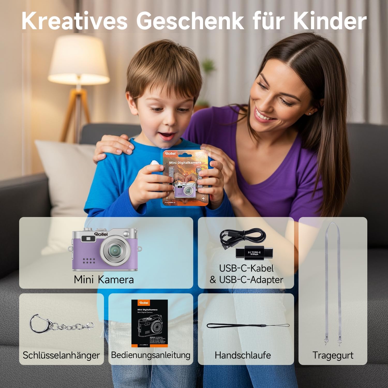 • 【Съдържание на опаковката】 Опаковката на тази малка, мини ретро камера съдържа: мини цифрова камера, USB-C кабел, USB-C адаптер, каишка за носене, каишка за китка, ключодържател, ръководство за употреба (английският език не е гарантиран)
