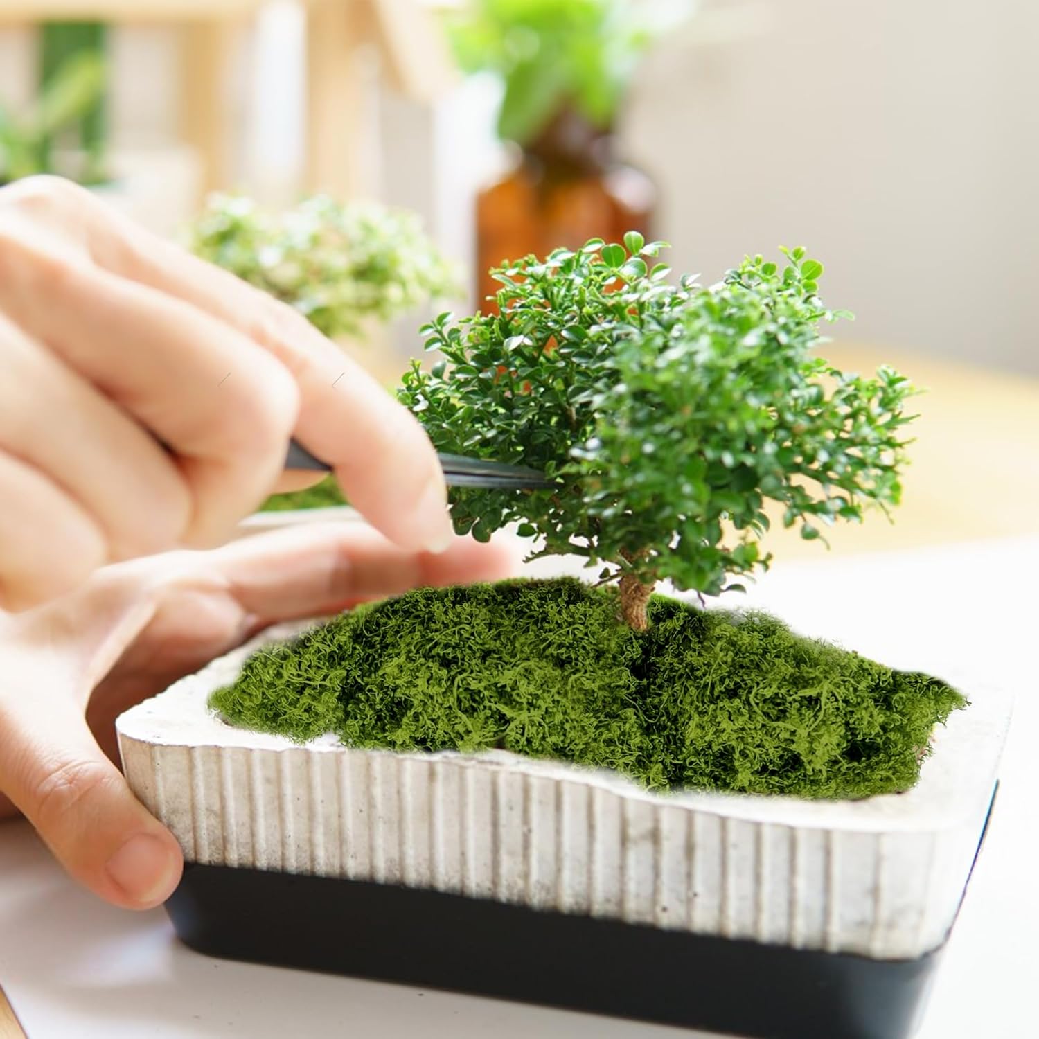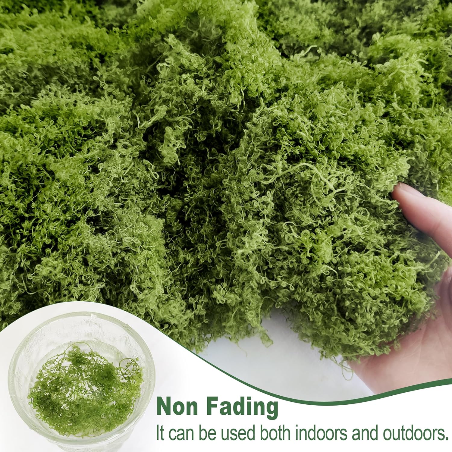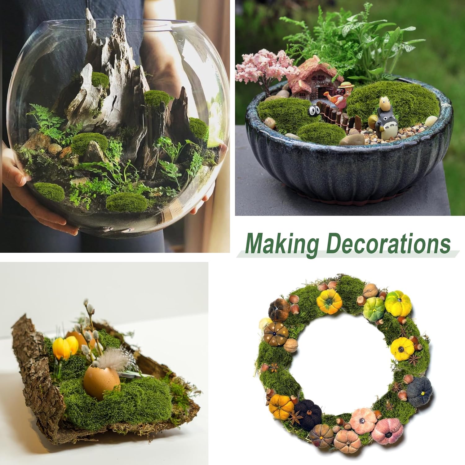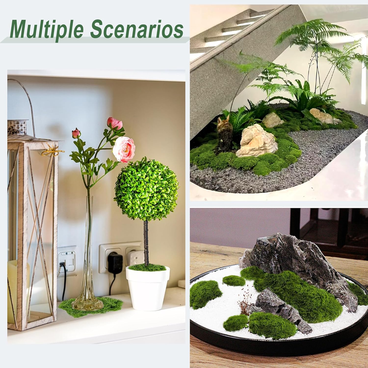 • Креативен дизайн: изкуственият мъх може да се използва за изработка на аквариуми, картини от мъх, стени от мъх, терариумни мъх, гирлянди от мъх, висящи кошници, покривки от мъх, постелки от мъх, изработка на модели от мъх и др.