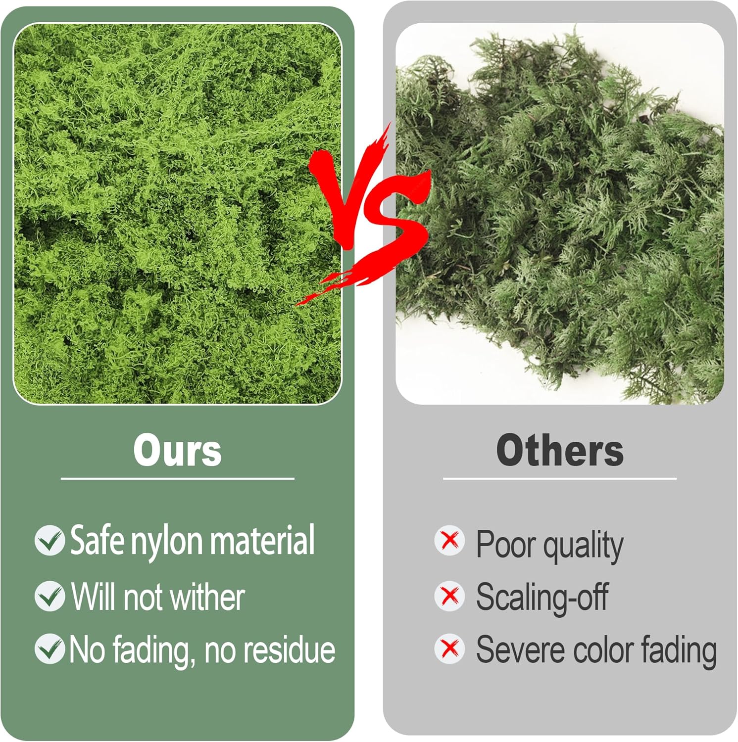 • Не изисква грижи и лесен за нанасяне: зеленият мъх за крафтинг е изработен от найлонов материал и е по-лесен за закрепване. Имитацията на мъх не е необходимо да се излива и не е включена в комплекта. Може да се накисва във вода без да се обезцветява.