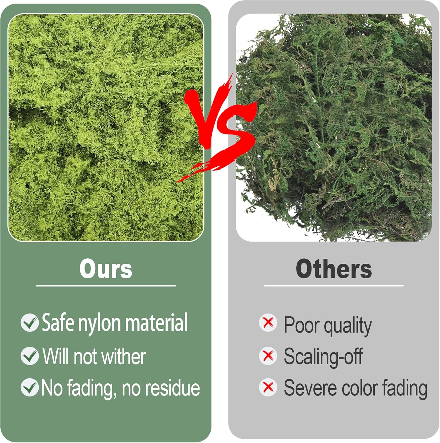 • Не изисква грижи и лесен за нанасяне: зеленият мъх за крафтинг е изработен от найлонов материал и е по-лесен за закрепване. Имитацията на мъх не е необходимо да се излива и не е включена в комплекта. Може да се накисва във вода без да се обезцветява.