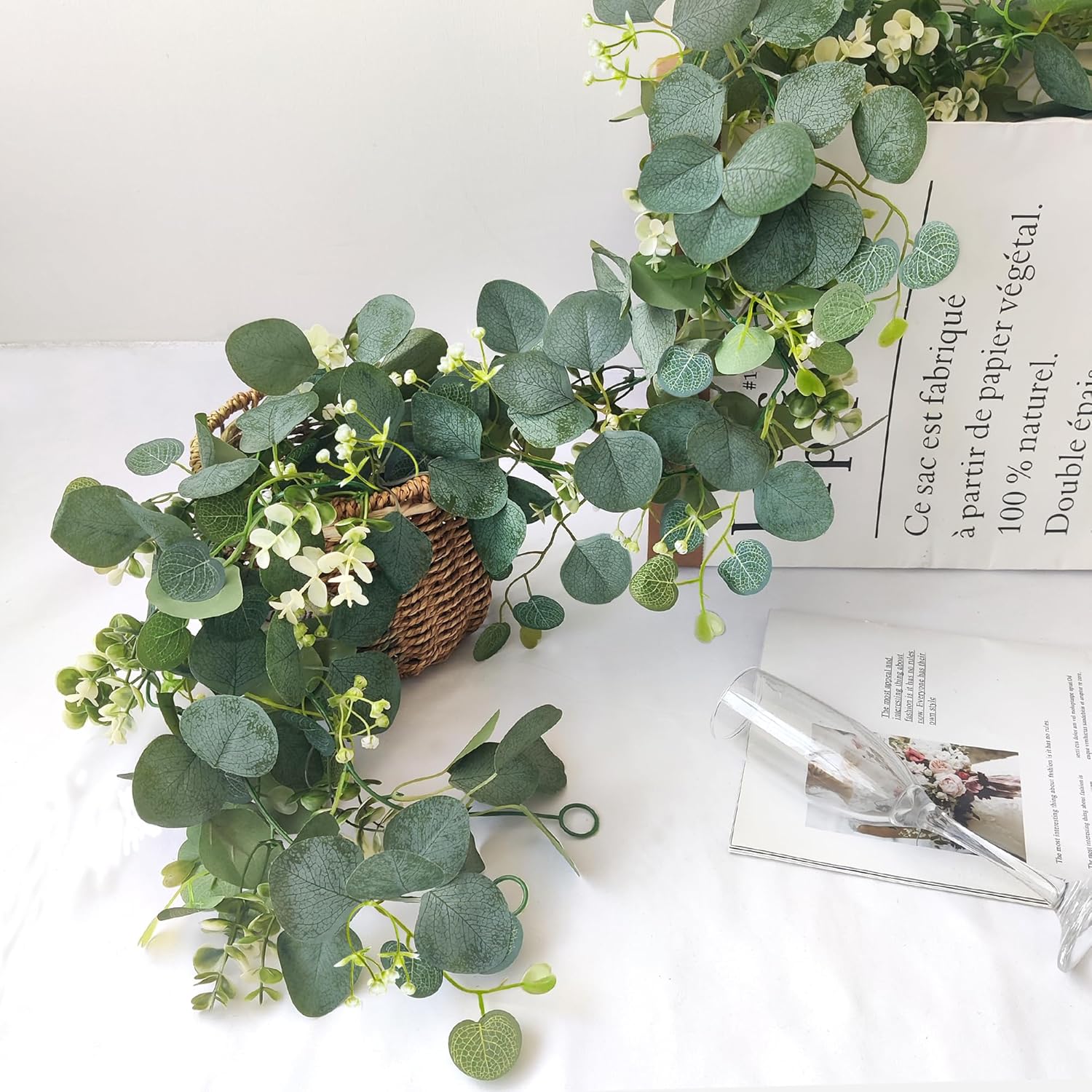 • Перфектна декорация: изкуствените гирлянди от евкалипт са чудесна декорация за сватбени арки, градини, веранди, балкони, люлки, декорация за конфирмации, сватбена украса и кошници за велосипеди. Евкалиптовите лози са подходящи и за „Направи си сам“ венци.