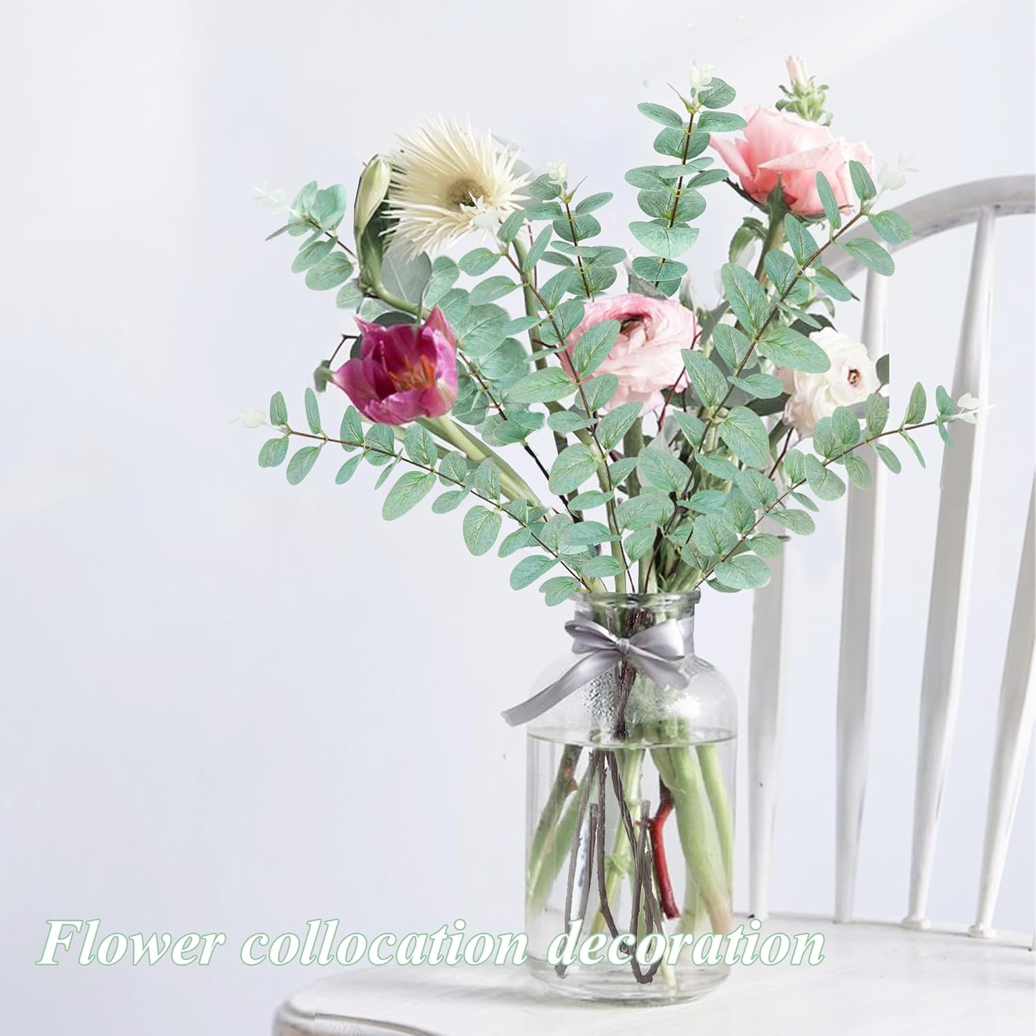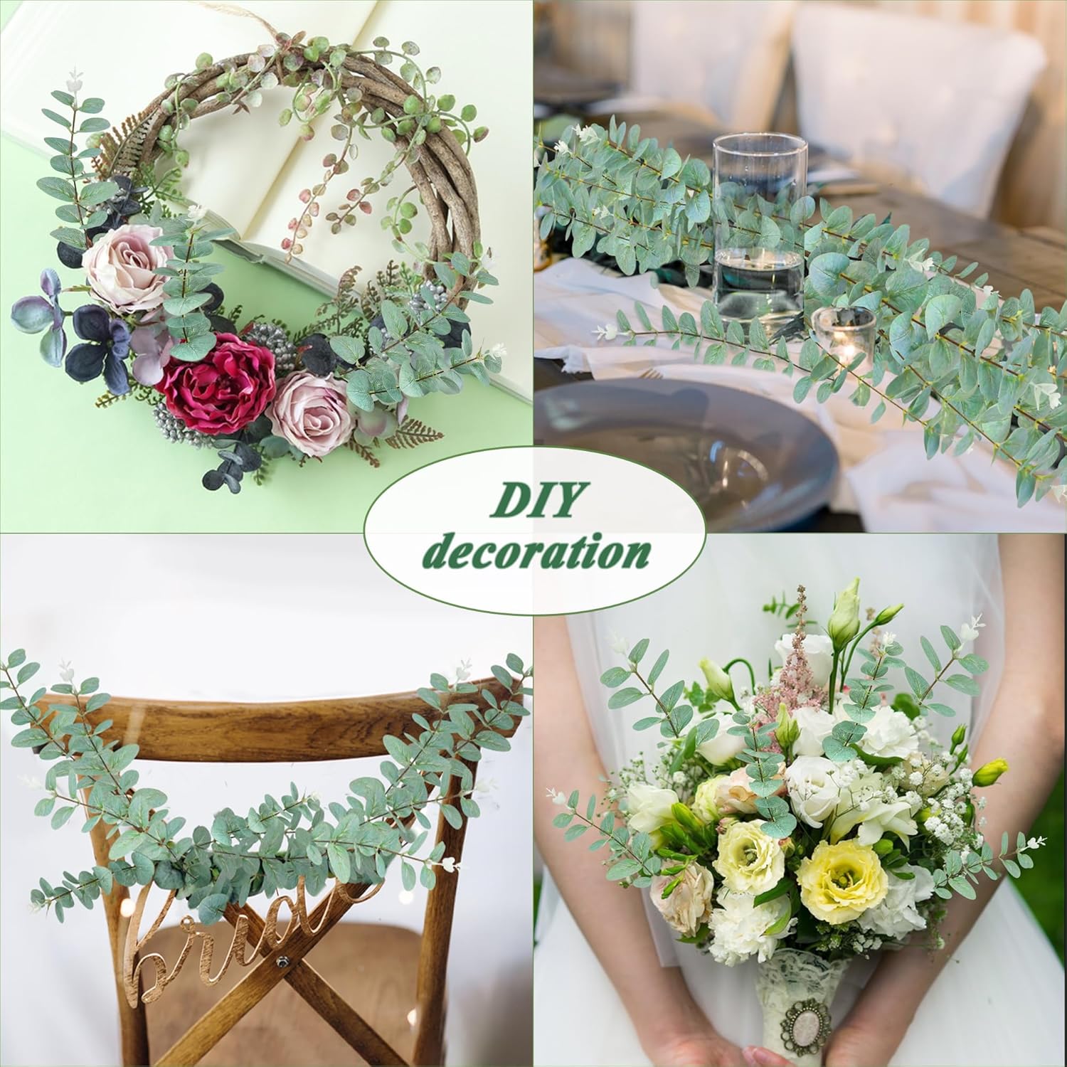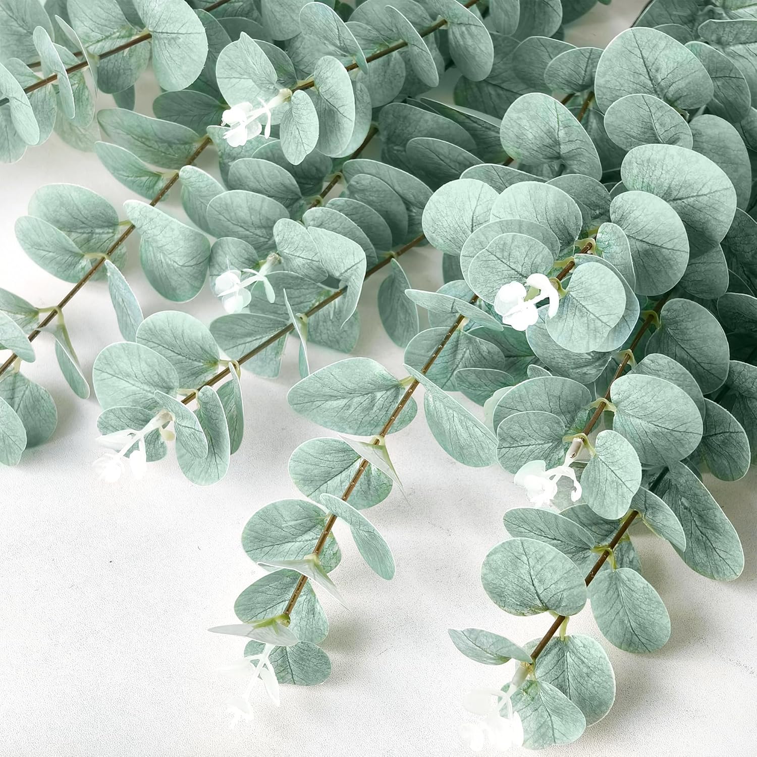 • Висококачествен материал: декоративните листа от евкалипт са изработени от текстил, а стъблата са изработени от метална тел, обвита с пластмаса.