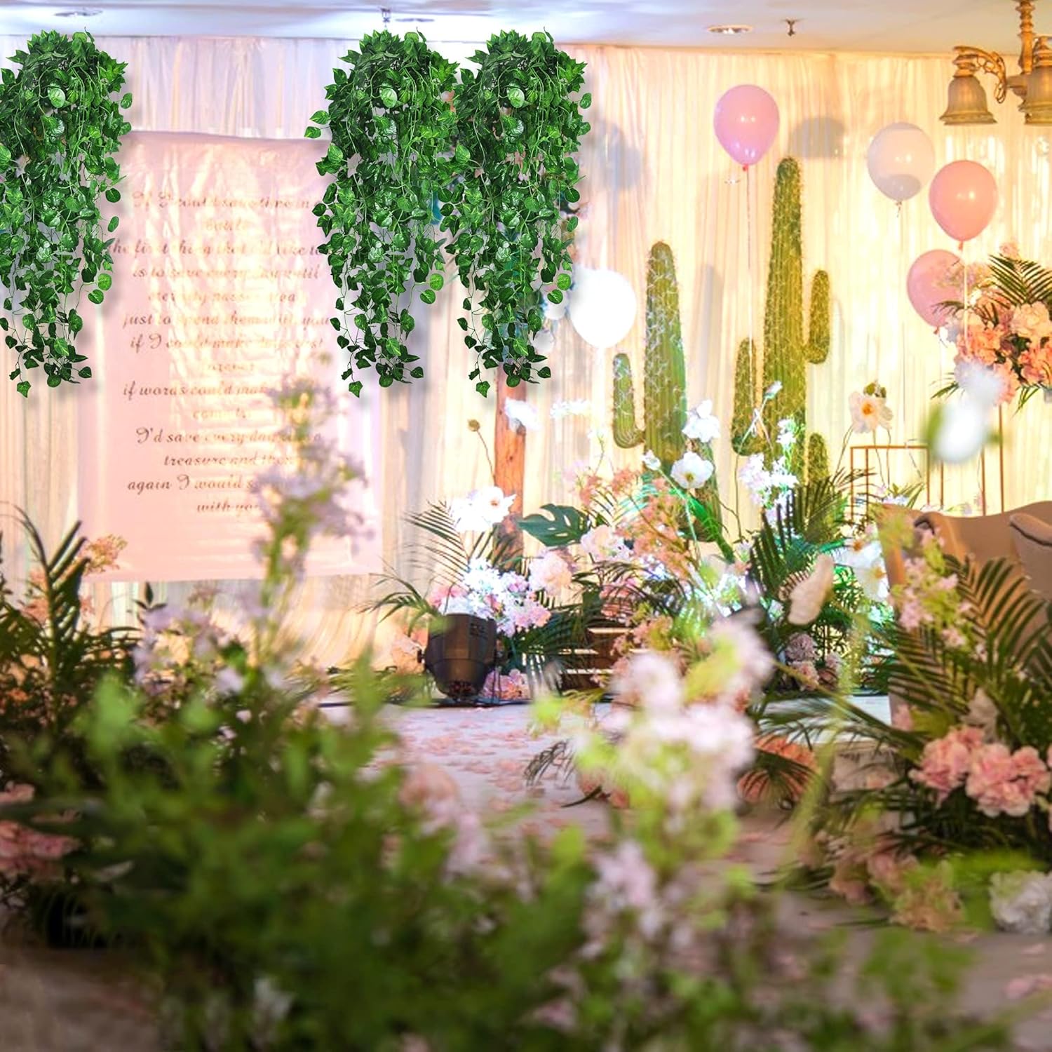 • Употреба на закрито и открито: изкуственият бръшлян е устойчив на атмосферни влияния и е подходящ за хол, балкон, сватбена градина, офис, ресторант, както и за всички интериорни и външни пространства. Изкуствените растения лоза са идеални за естествена градинска декорация. Просто ги прикрепете към тавани, стени, парапети или перголи, за да създадете естествен вид, който винаги остава свеж и зелен.