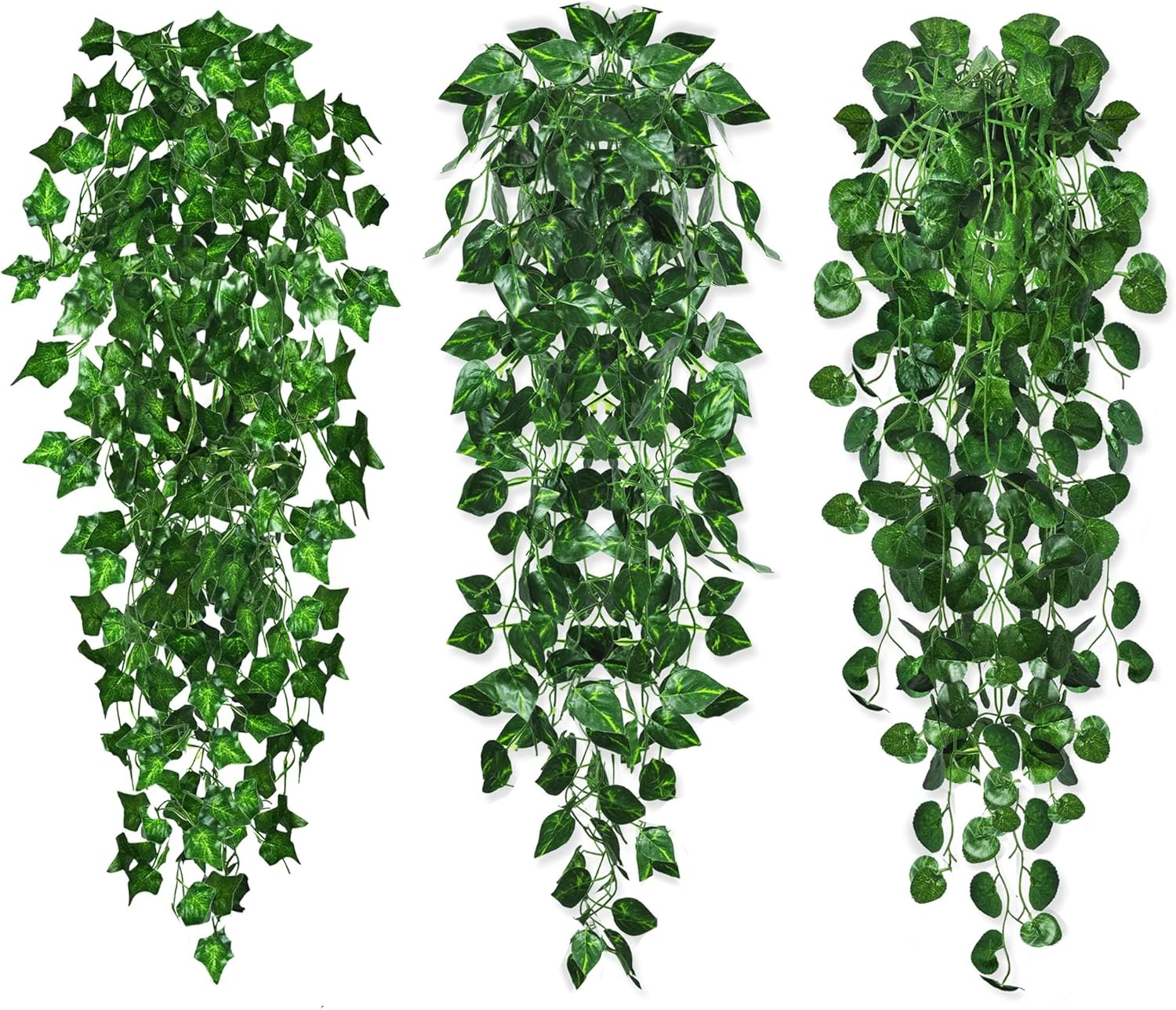 ROLLWAY Пакет от 3 изкуствени растения за висящи растения 96 см изкуствен бръшлян изкуствени растения лозови зелени растения балконски растения пластмасови растения за вътрешна и външна градина декорация на стена