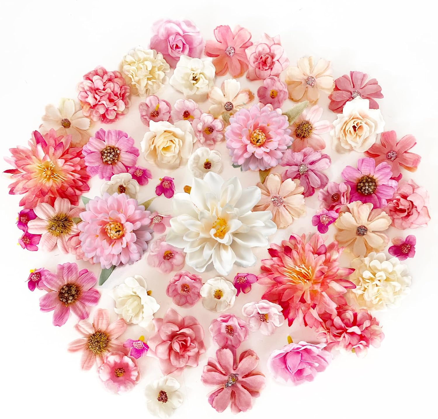 ROLLWAY Пакет от 34 изкуствени цветя за занаяти Розови малки цветни главички 4 ~ 7 см, Мини изкуствени цветя Цветни главички Декоративни копринени цветя Изкуствени цветя Цветна декорация Рози Хортензии за торта