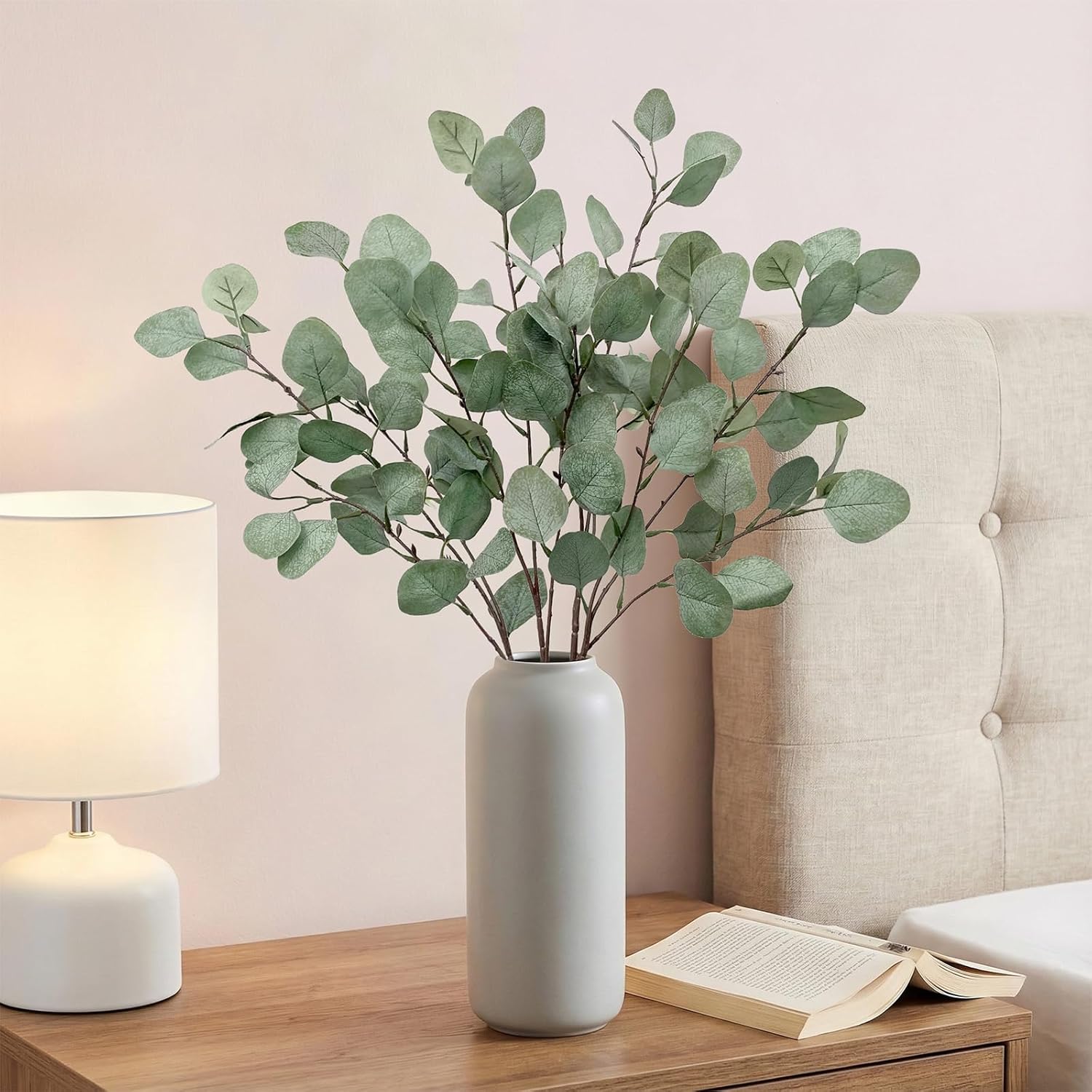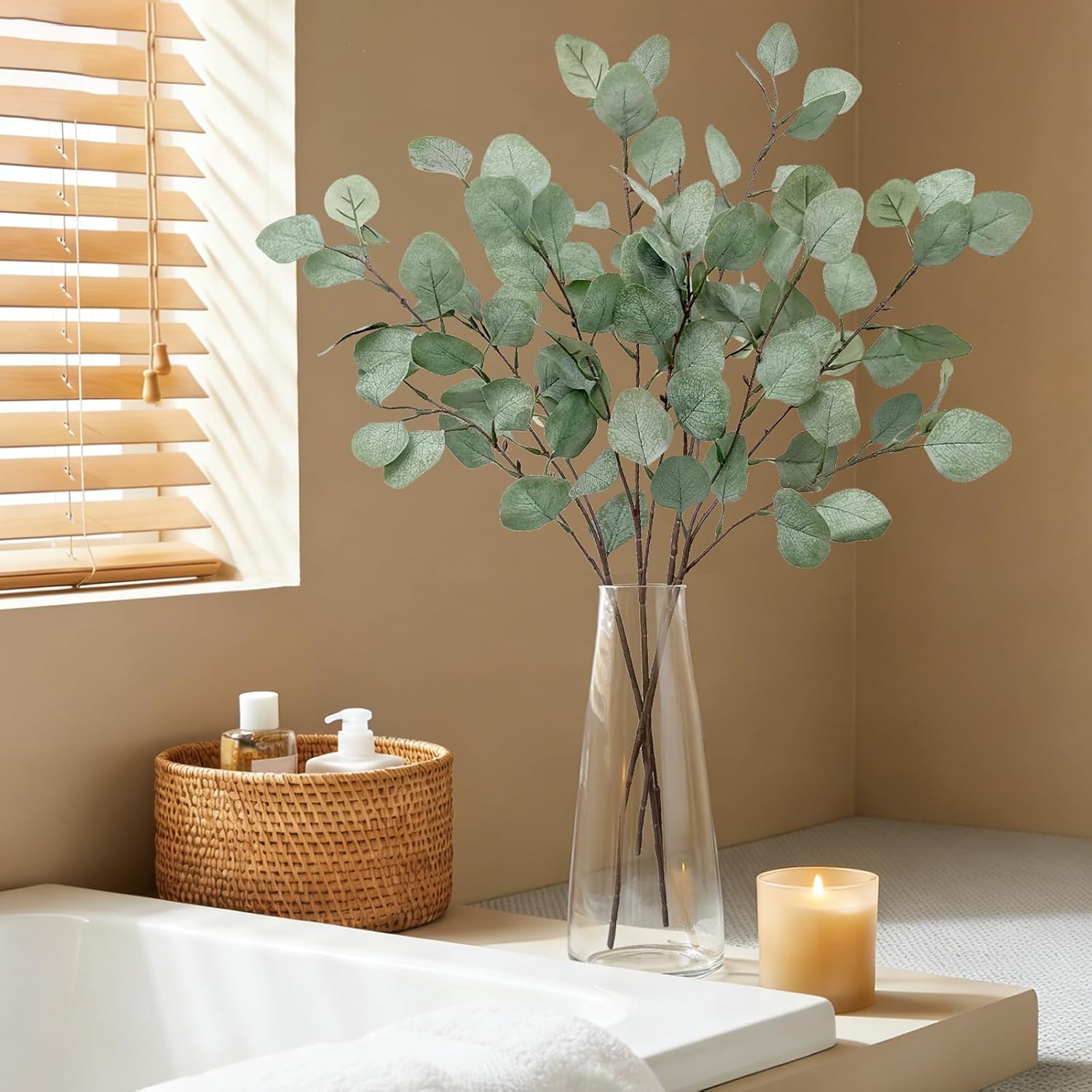 • Изкуствени клони като истински Всяка декорация от евкалипт има 5 клона и 100 евкалиптови листа. Реалистичният дизайн на листата, прозрачната текстура и усещането за истинско усещане правят арт евкалипта да изглежда като истински и добавят естествен щрих към вашата стая.