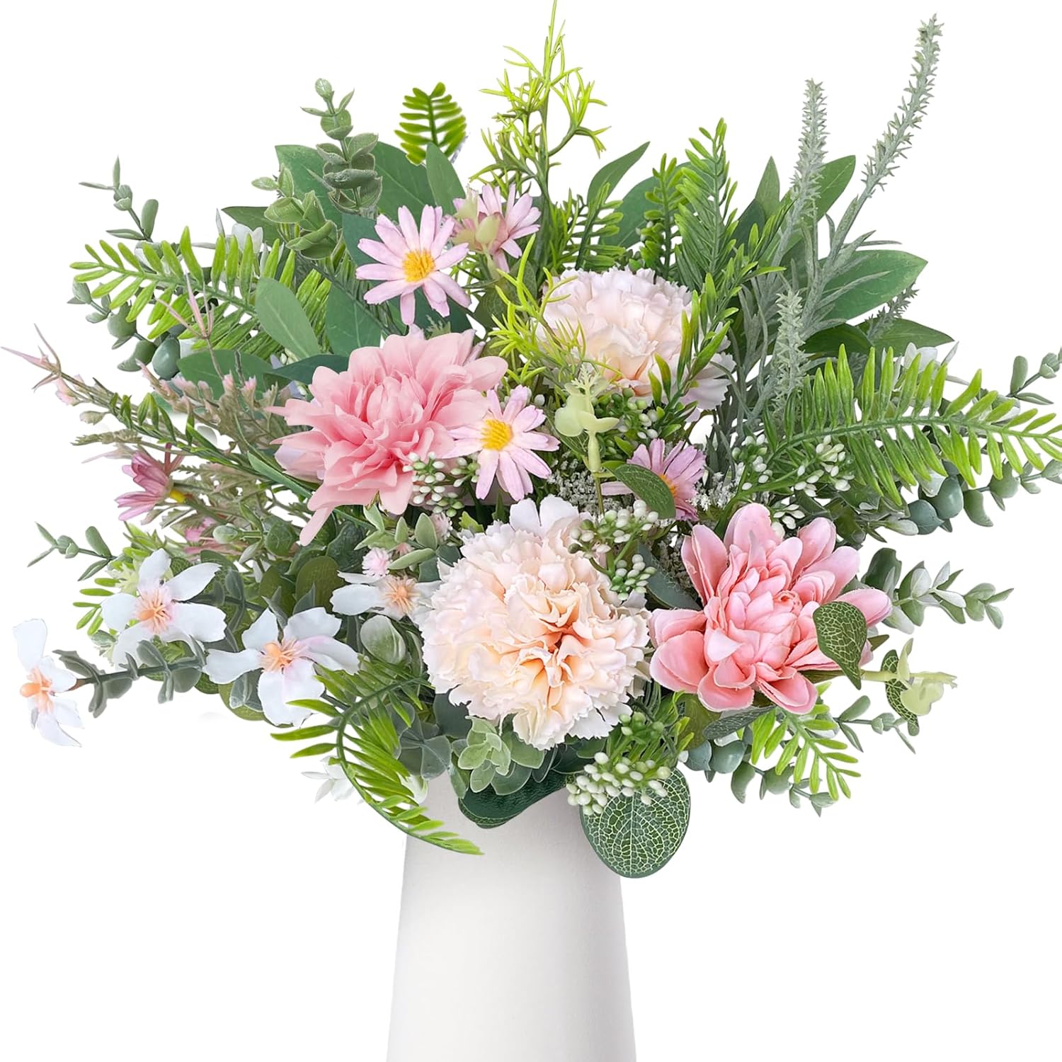 ROLLWAY Пакет от 55 изкуствени клонки и изкуствени цветя, бели цветя, листа, изкуствени декоративни клонки, арт цветя, букет от изкуствени цветя, евкалиптови хортензии за „Направи си сам“ букет, булчински букет, сватба (55, бели)