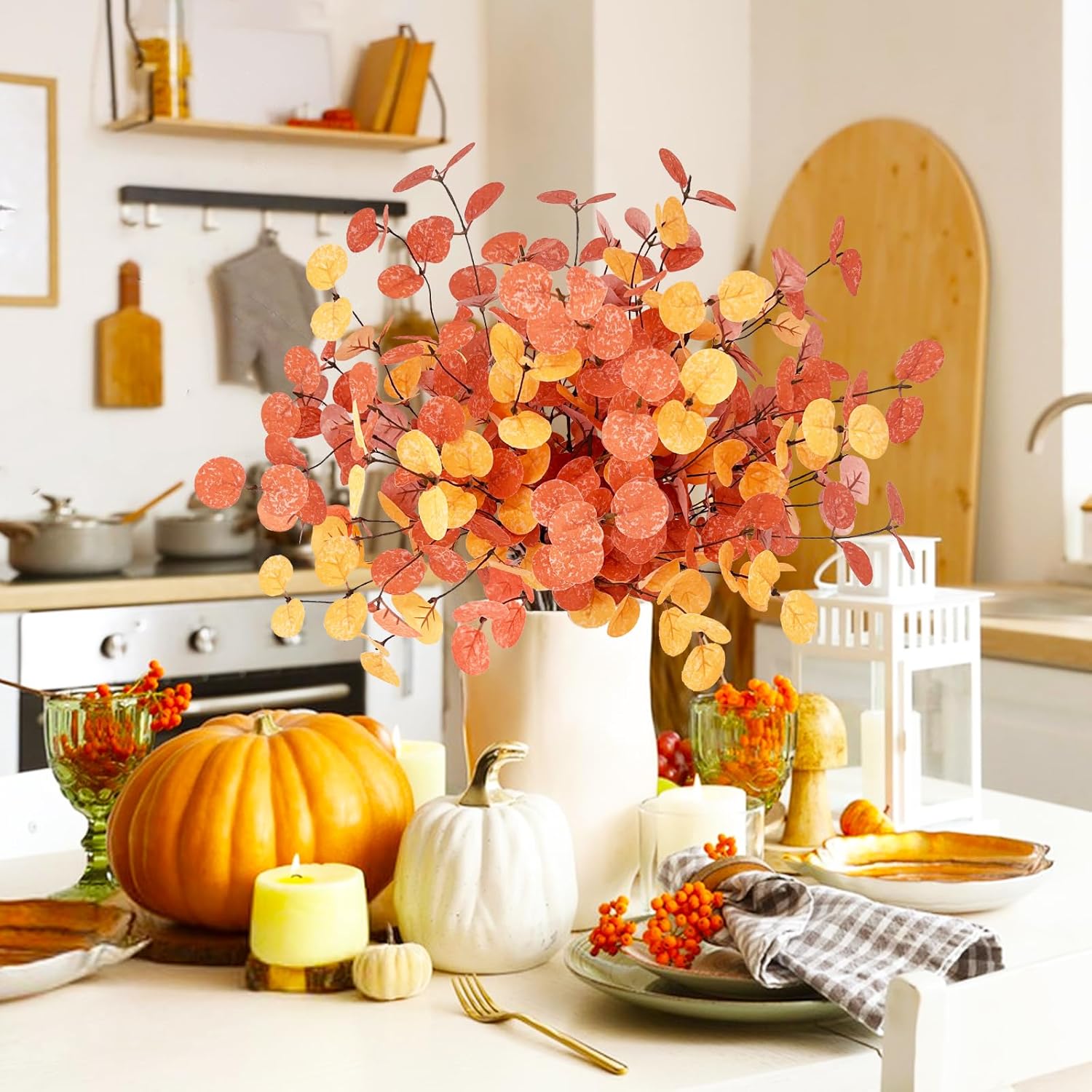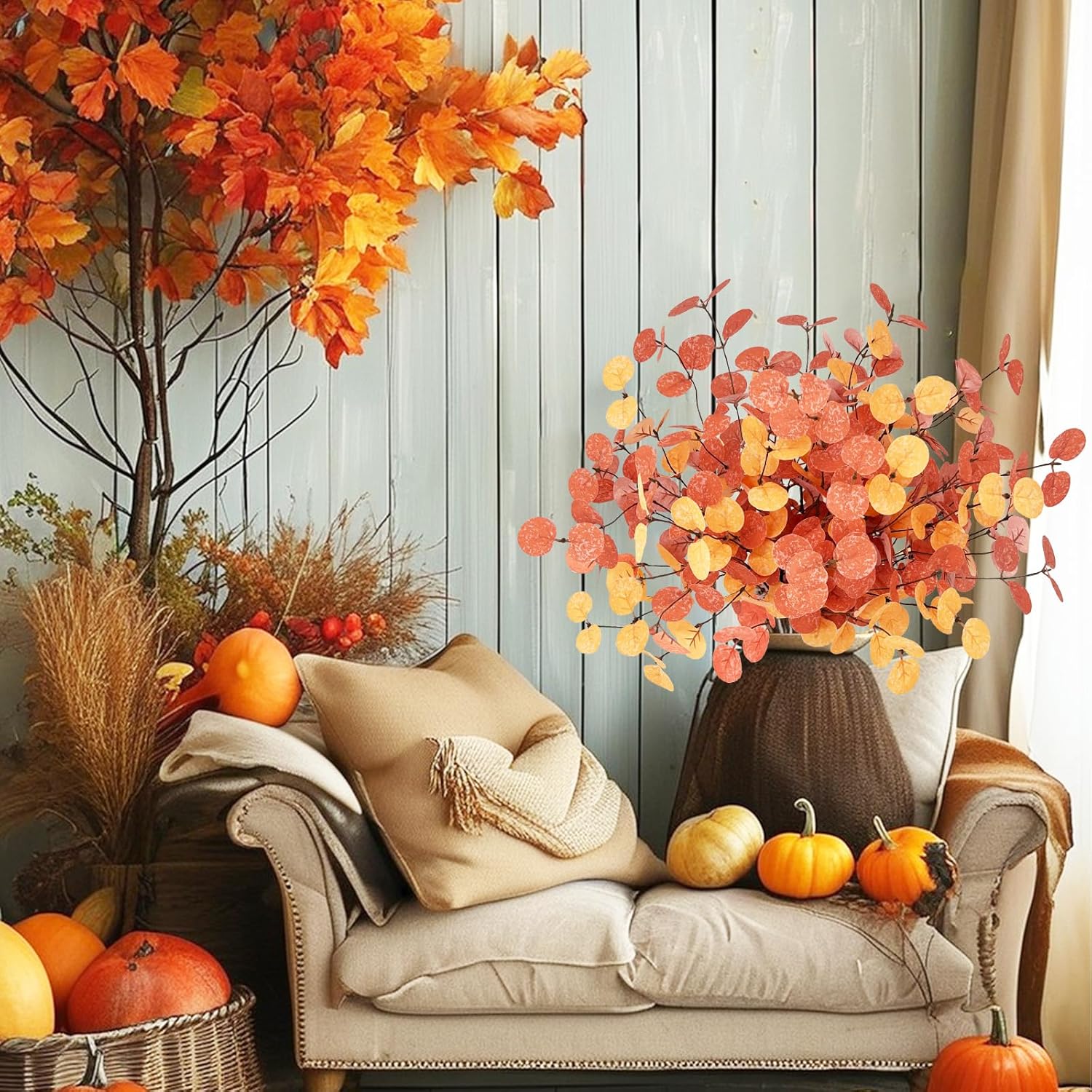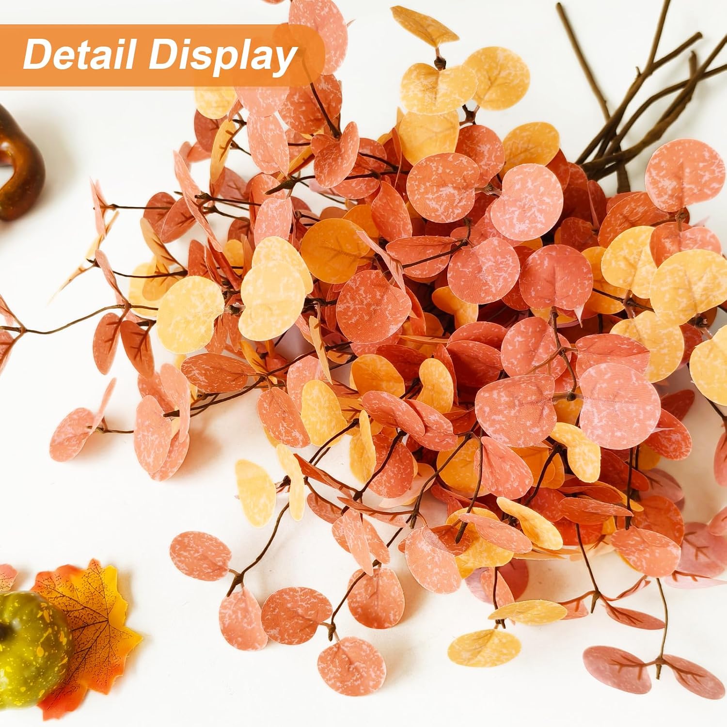 • Изкуствени клони като истински Всяка декорация от евкалипт има 5 клона и 100 евкалиптови листа. Реалистичният дизайн на листата, прозрачната текстура и усещането за истинско усещане правят арт евкалипта да изглежда като истински и добавят естествен щрих към вашата стая.
