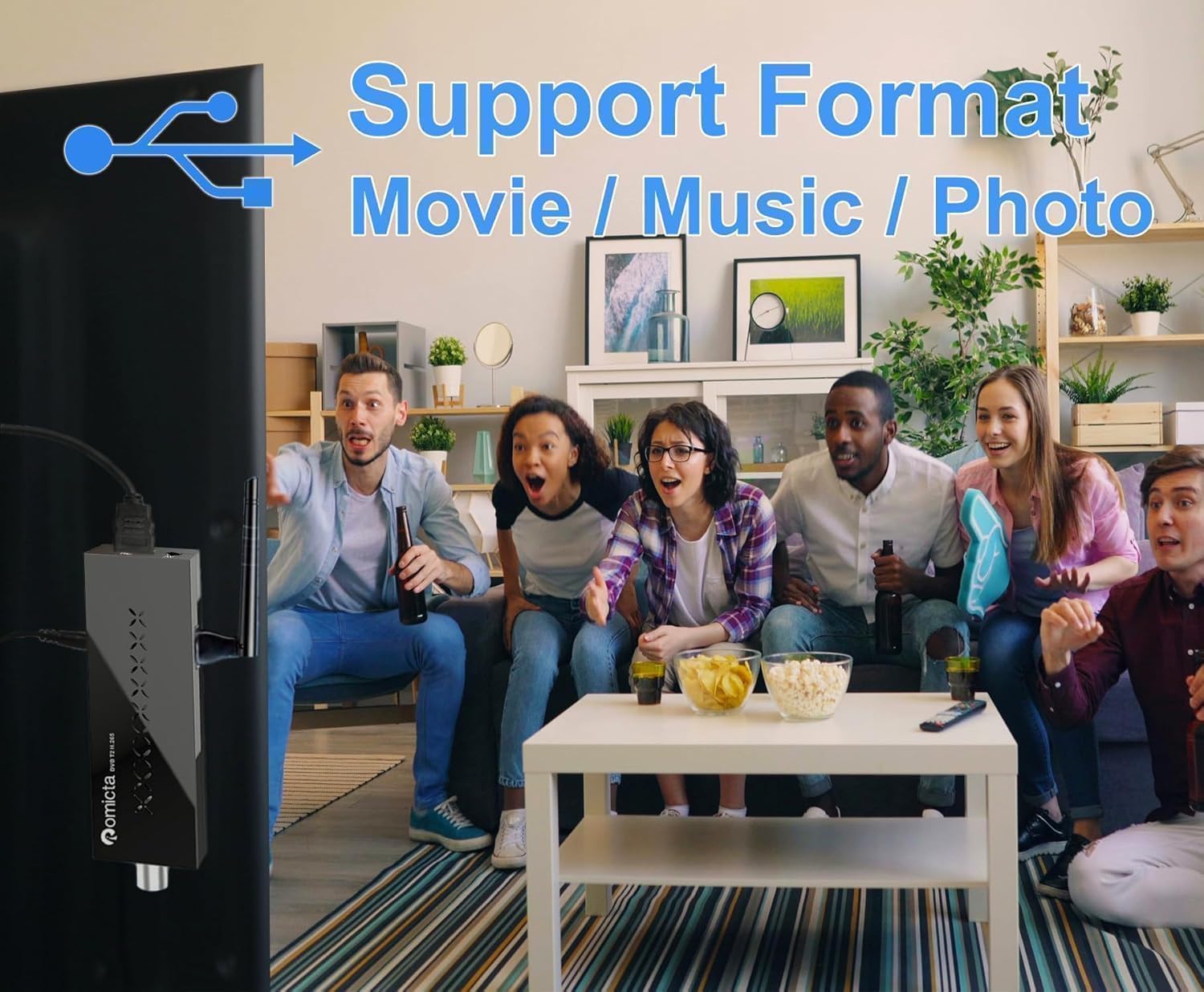 DVB-T2 декодерът може да използва USB диск или твърд диск (FAT16/FAT32/NTFS), можете да се наслаждавате на филми, музика, снимки и PVR видеоклипове от USB устройства за съхранение.