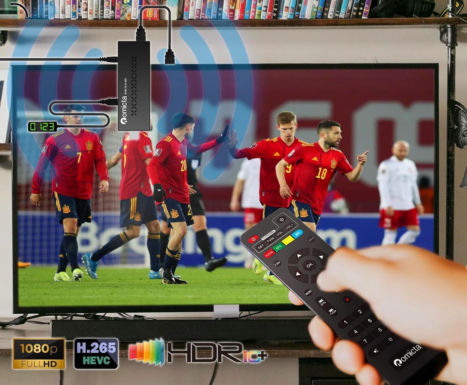 Сега можете да конвертирате телевизора си към новия DVB-T2 стандарт само с няколко прости стъпки. Romicta ви предлага декодер за цифрова ефирна телевизия от ново поколение за 2024 г., с който можете да конвертирате стария си телевизор в цифрова телевизия, без да се налага да купувате нов телевизор. Наслаждавайте се на цялото съдържание във Full HD 1080p HEVC H.265 10Bit чрез цифрово ефирно стрийминг през вашия телевизор, монитор или проектор.