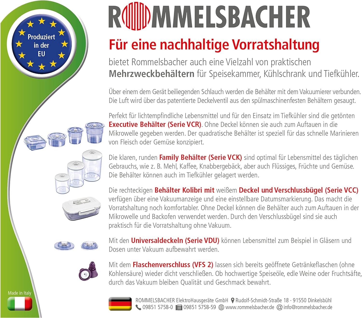 • Подходящ е и за вакуумни опаковчици от други марки, като например B CASO, Solis, Clatronic, Bestron, Bomann, Leifheit, Easyvac, Foodsaver, Gastroback, Crenova, Klarstein, LAICA, Lava, Profi Cook, Rosenstein, TCM, Severin, Genio, Krups, Leifheit и много други.