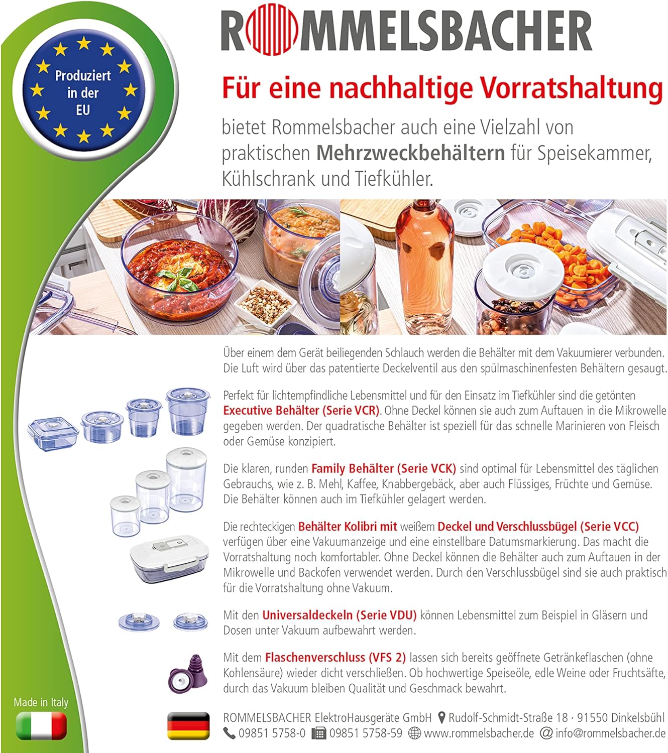 • Подходящ е и за вакуумни опаковчици от други марки, като например B CASO, Solis, Clatronic, Bestron, Bomann, Leifheit, Easyvac, Foodsaver, Gastroback, Crenova, Klarstein, LAICA, Lava, Profi Cook, Rosenstein, TCM, Severin, Genio, Krups, Leifheit и много други.