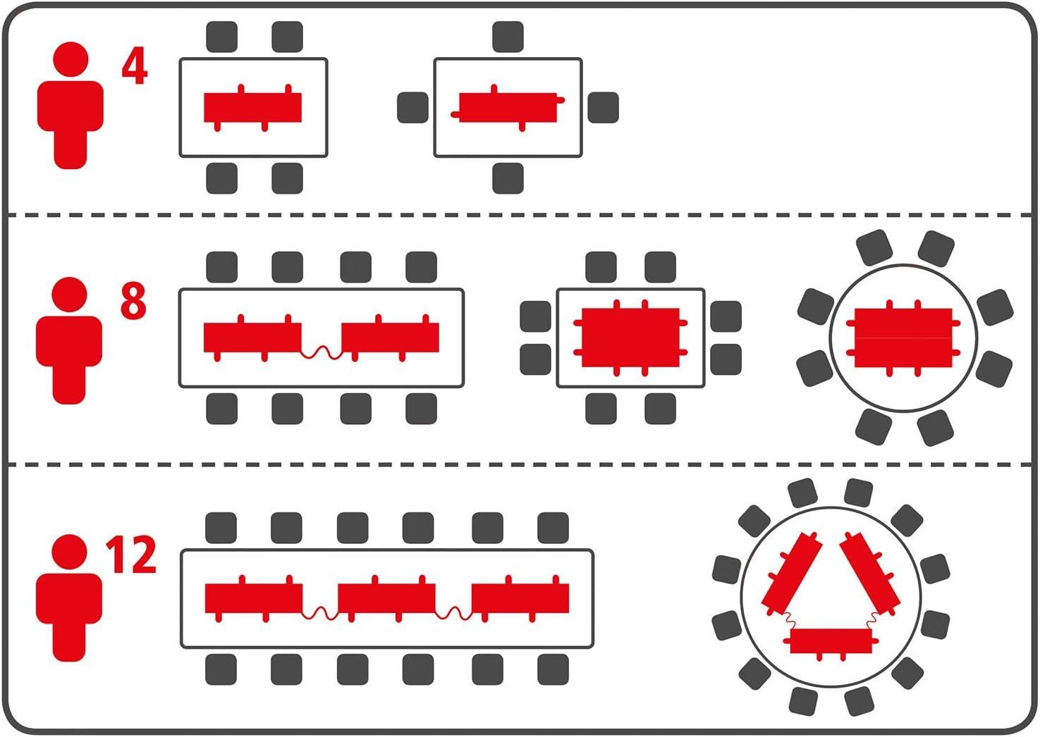 Като специален акцент, до три отделни устройства от тази серия могат да бъдат свързани помежду си чрез свързващи кабели и комбинирани помежду си. Това позволява максимално забавление при раклет и барбекю, дори и на голяма кръгла маса с до 12 тигана.